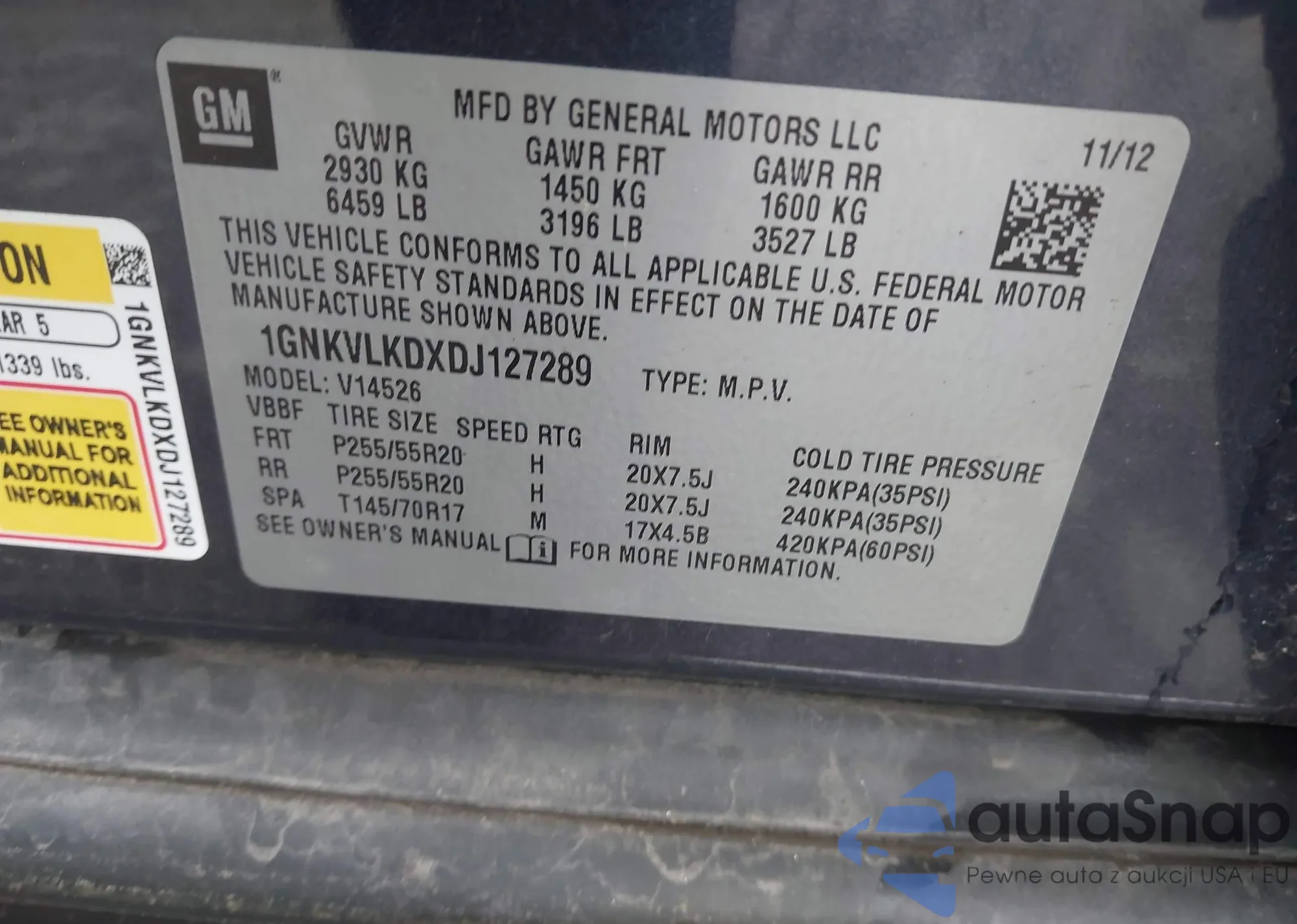 LOT: 42398760 VIN: 1GNKVLKDXDJ127289