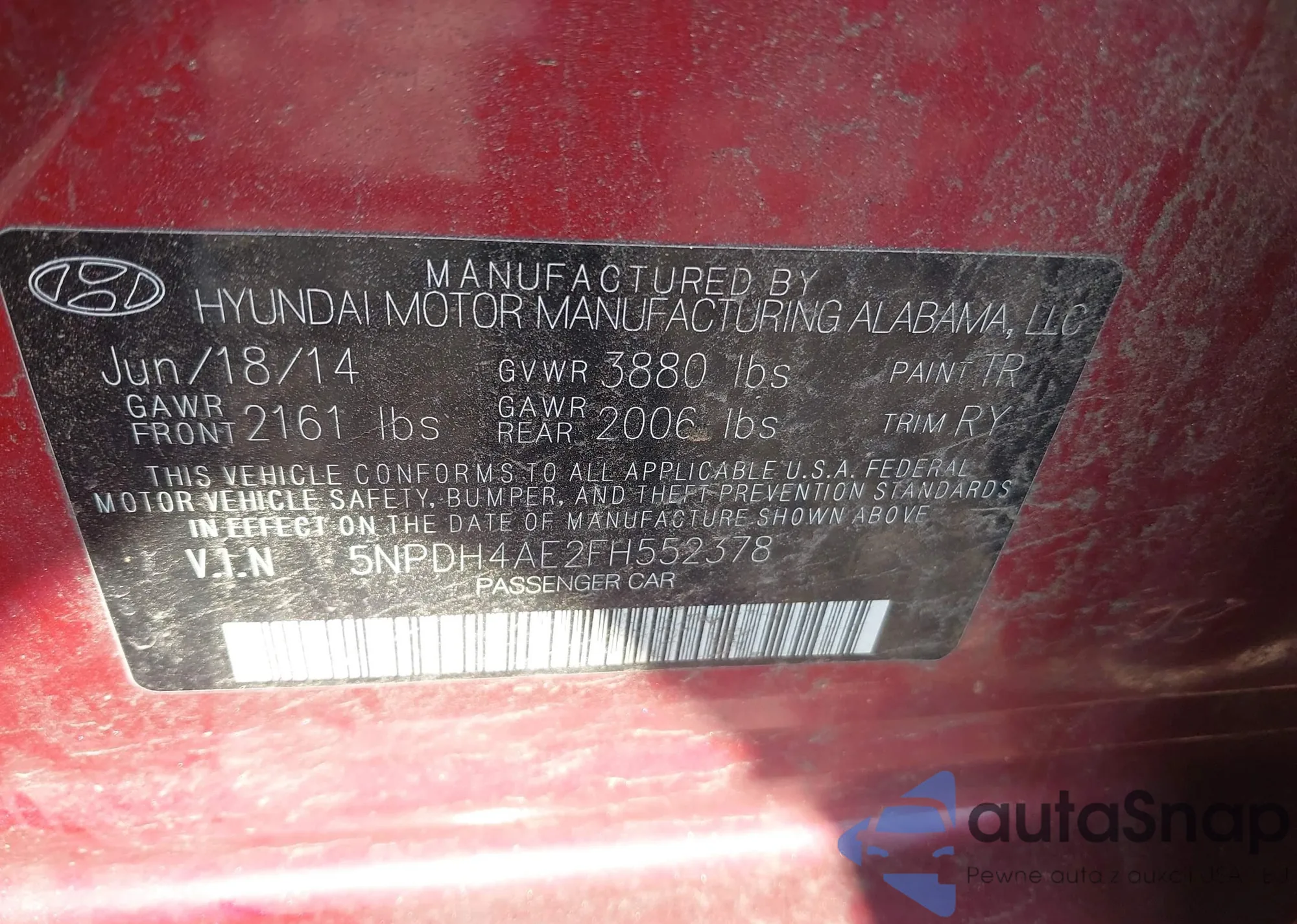 • VIN 5NPDH4AE2FH552378