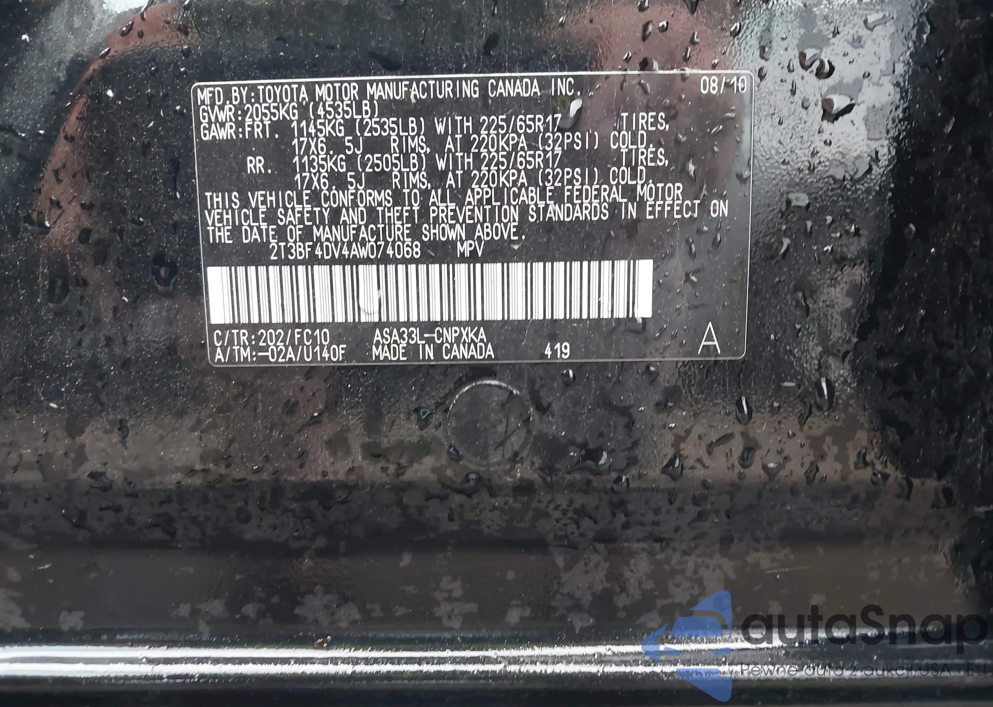 • VIN 2HKRM4H76DH638377
