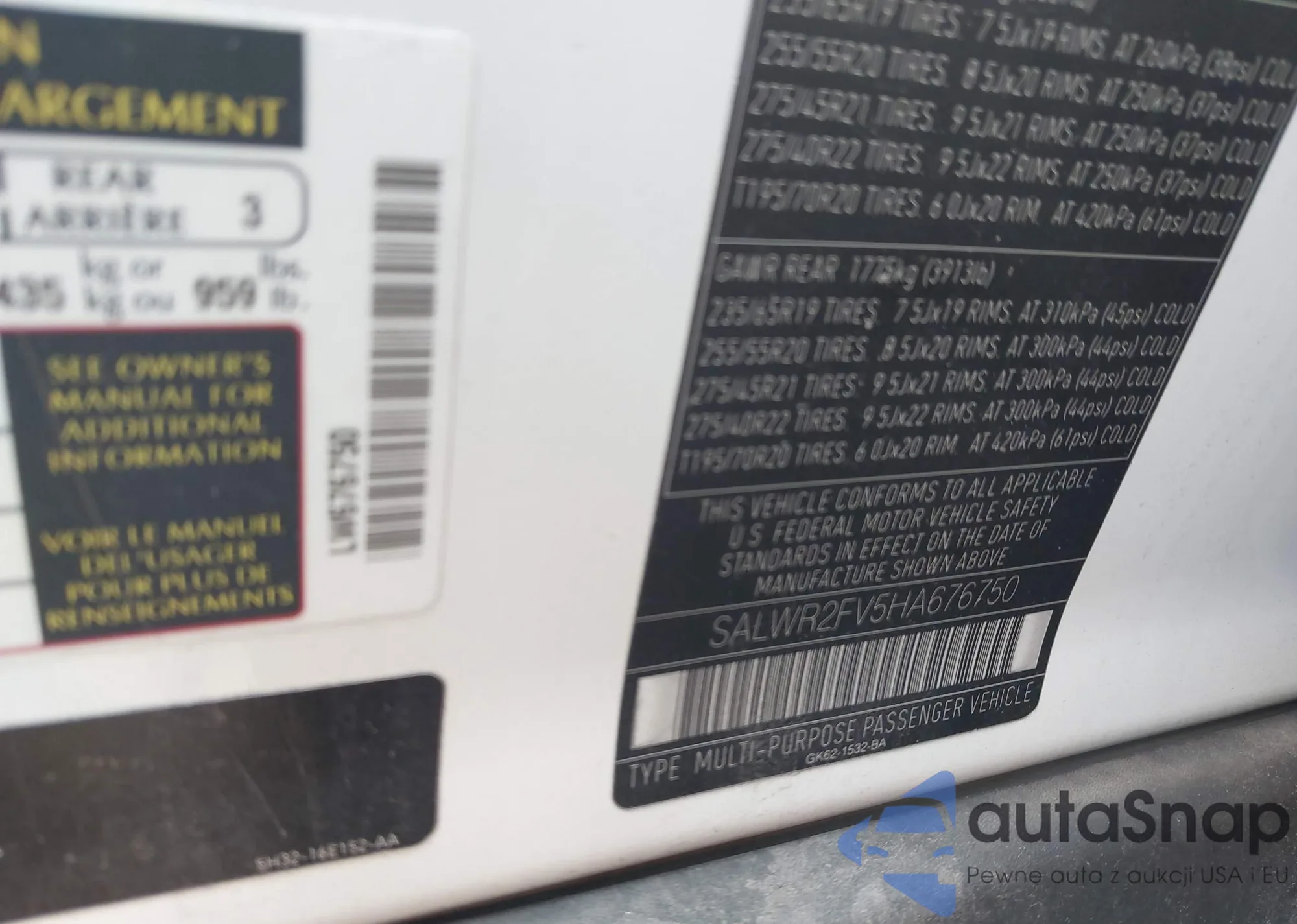 • VIN SALWR2FV5HA676750