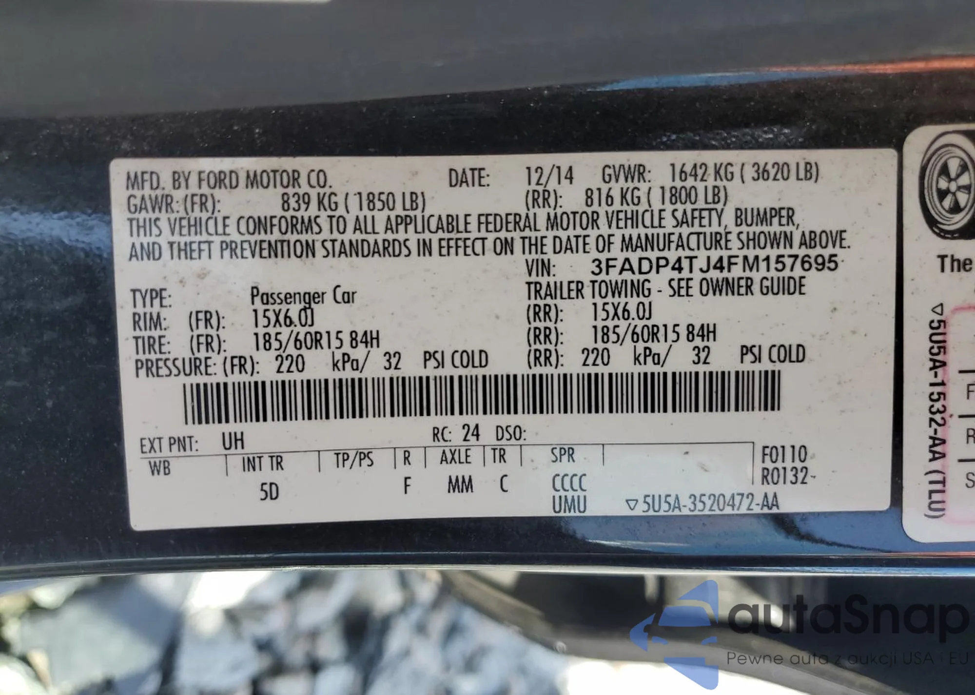 LOT: 49039615 VIN: 1FMCU9H95NUA28364