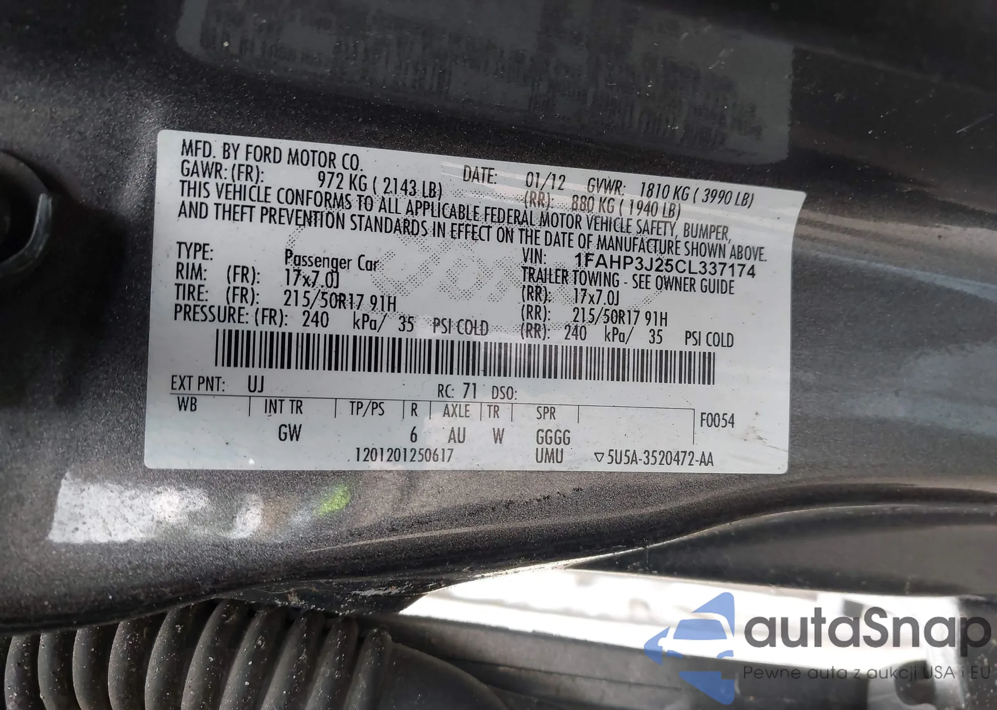 • VIN 1FAHP3J25CL337174