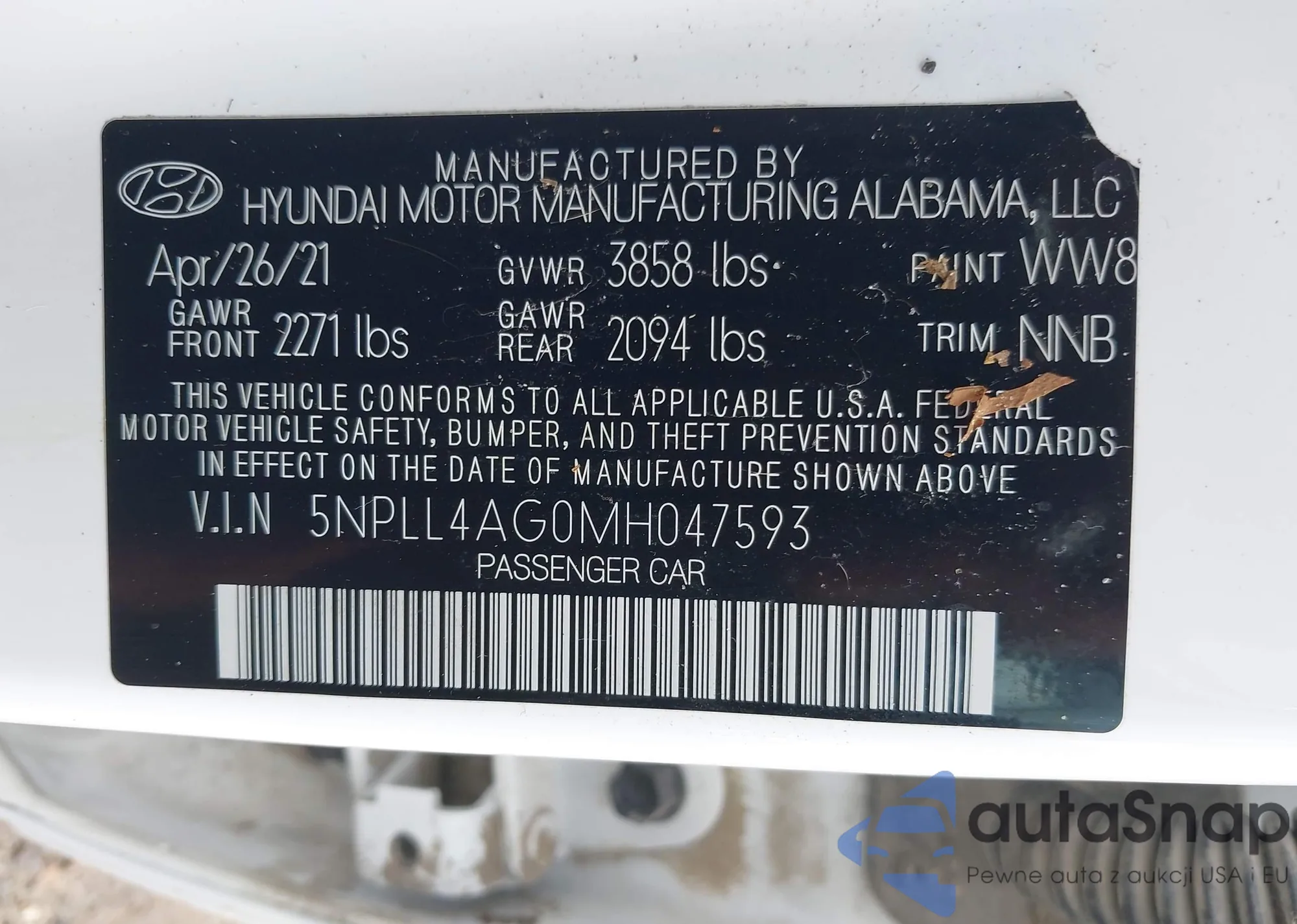 • VIN 5NPLL4AG0MH047593
