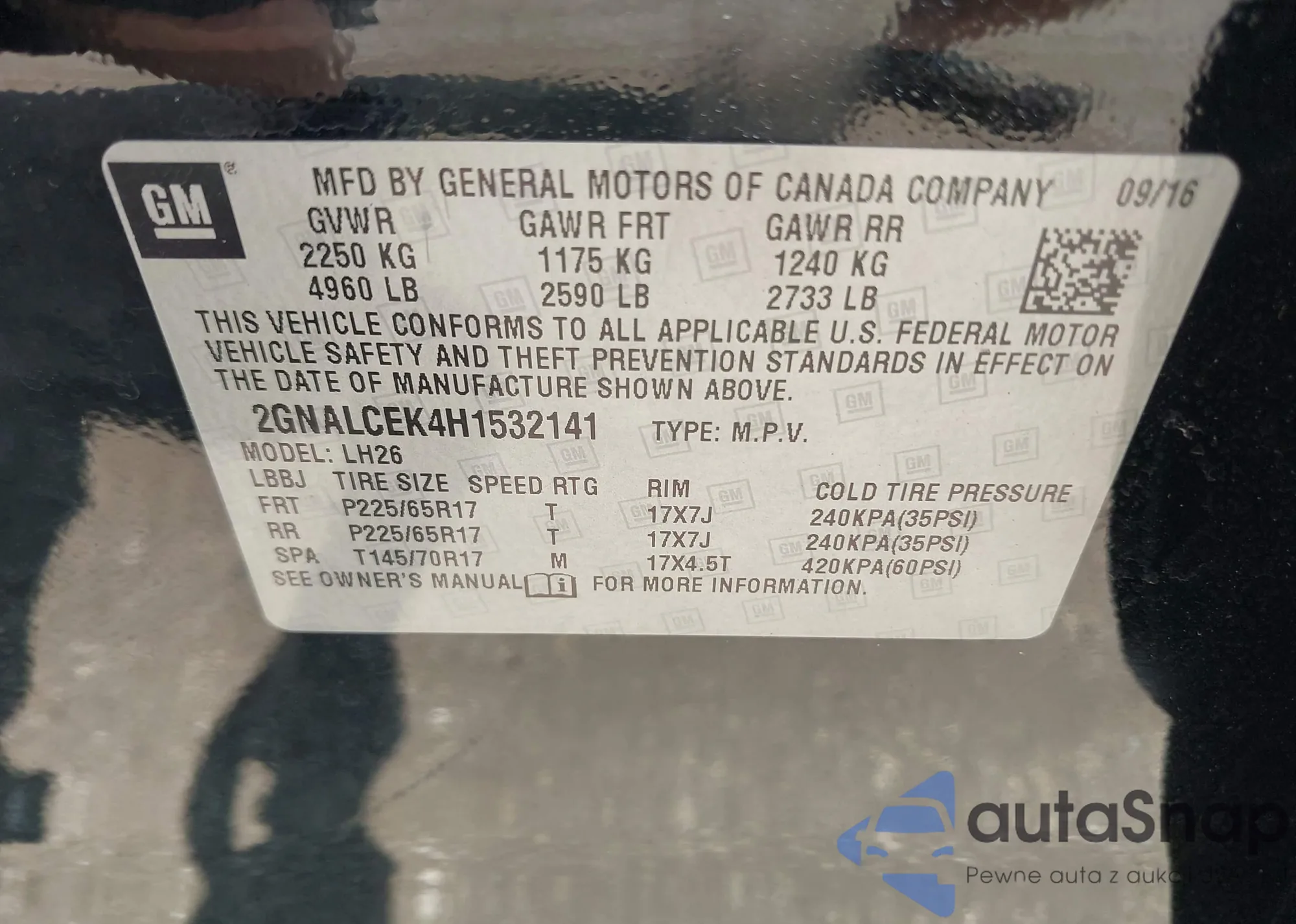 • VIN 2GNALCEK4H1532141