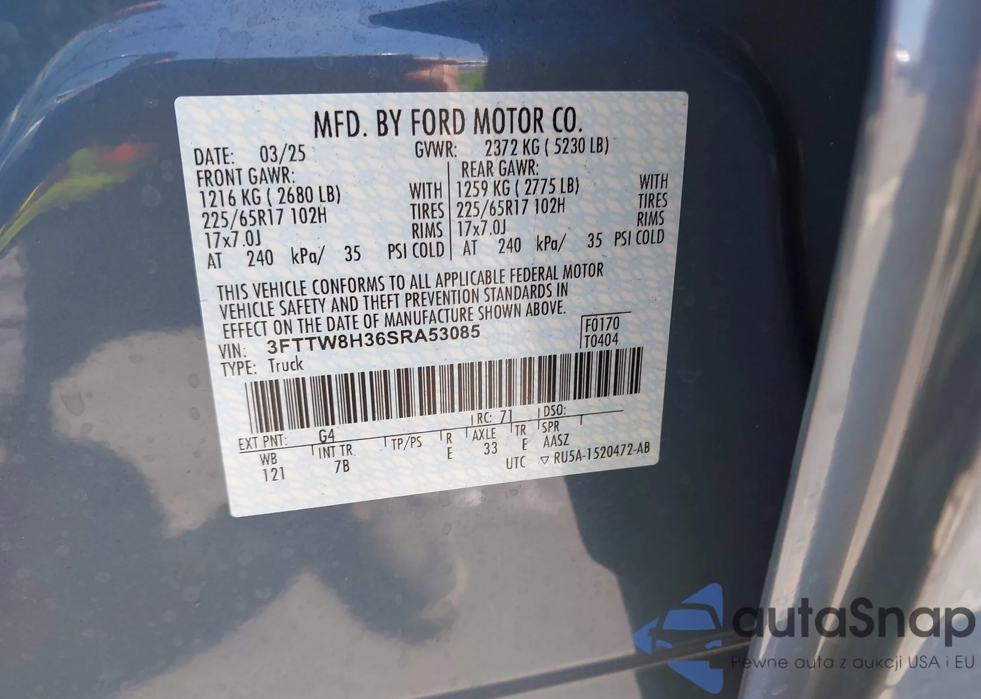 • VIN 3FTTW8H36SRA53085