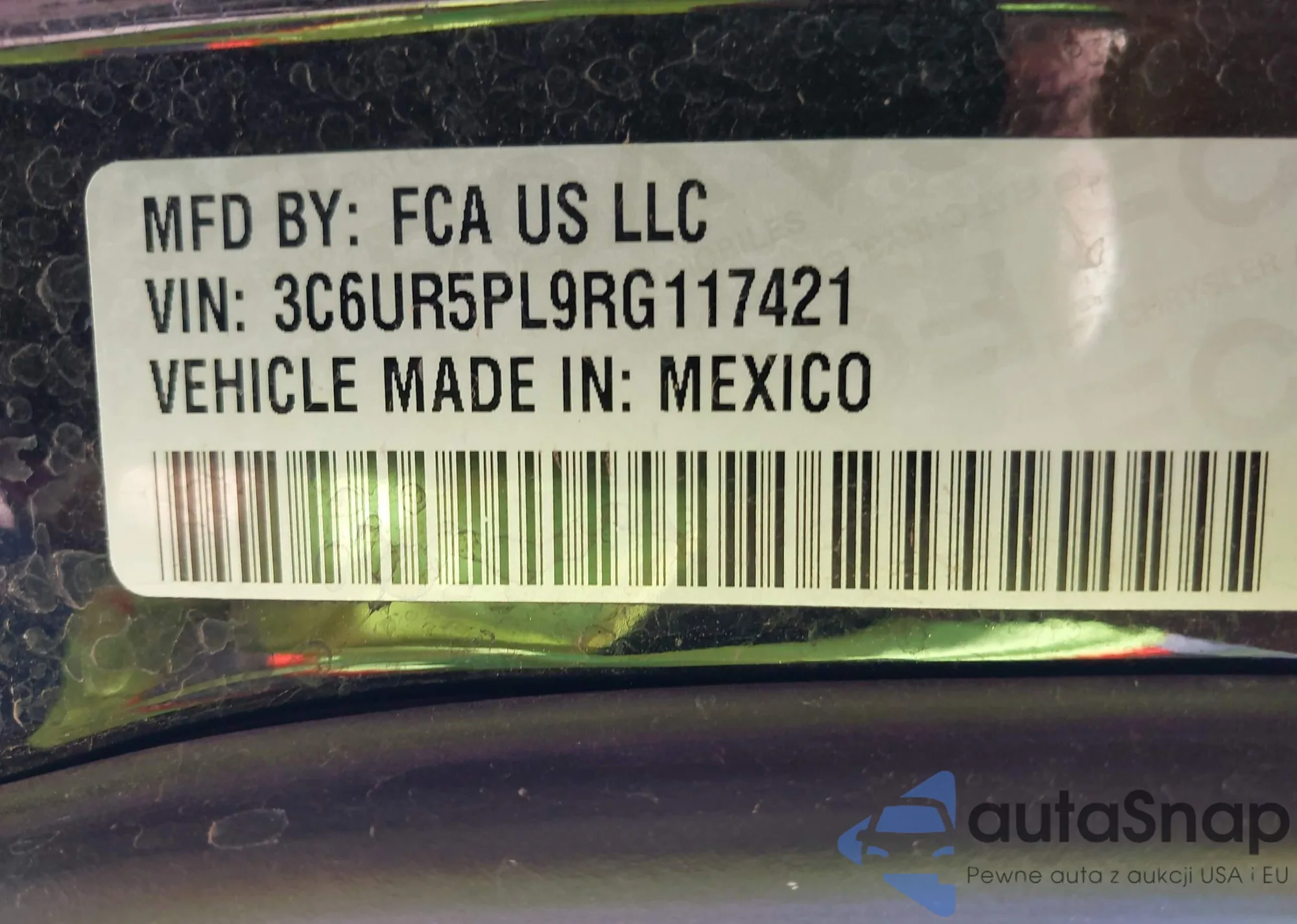 • VIN 3C6UR5PL9RG117421