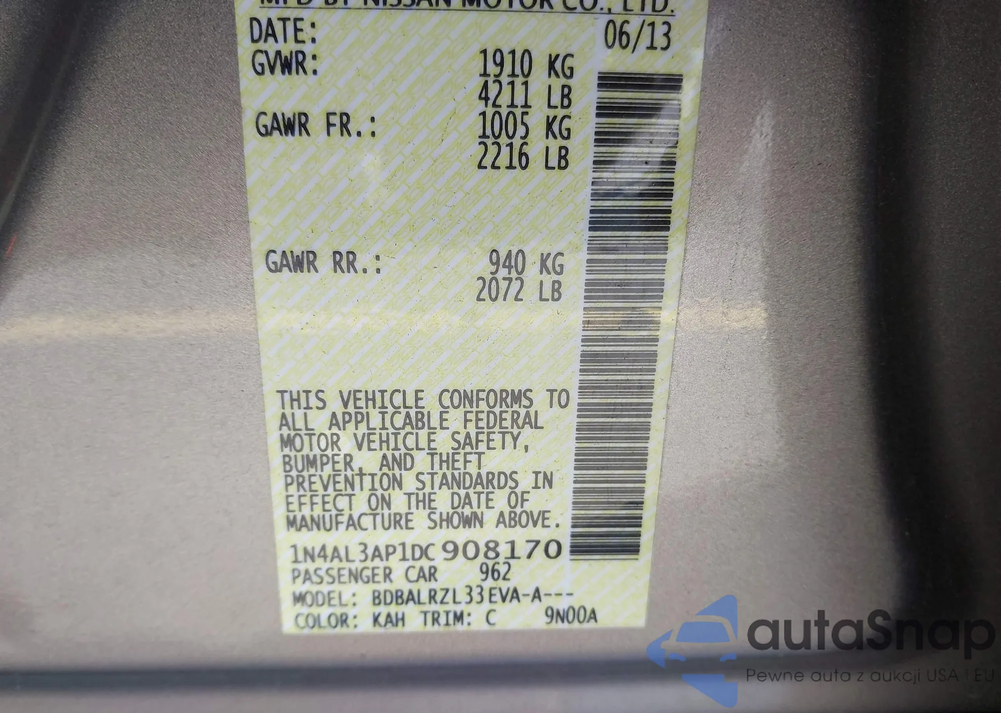 • VIN 1N4AL3AP1DC908170