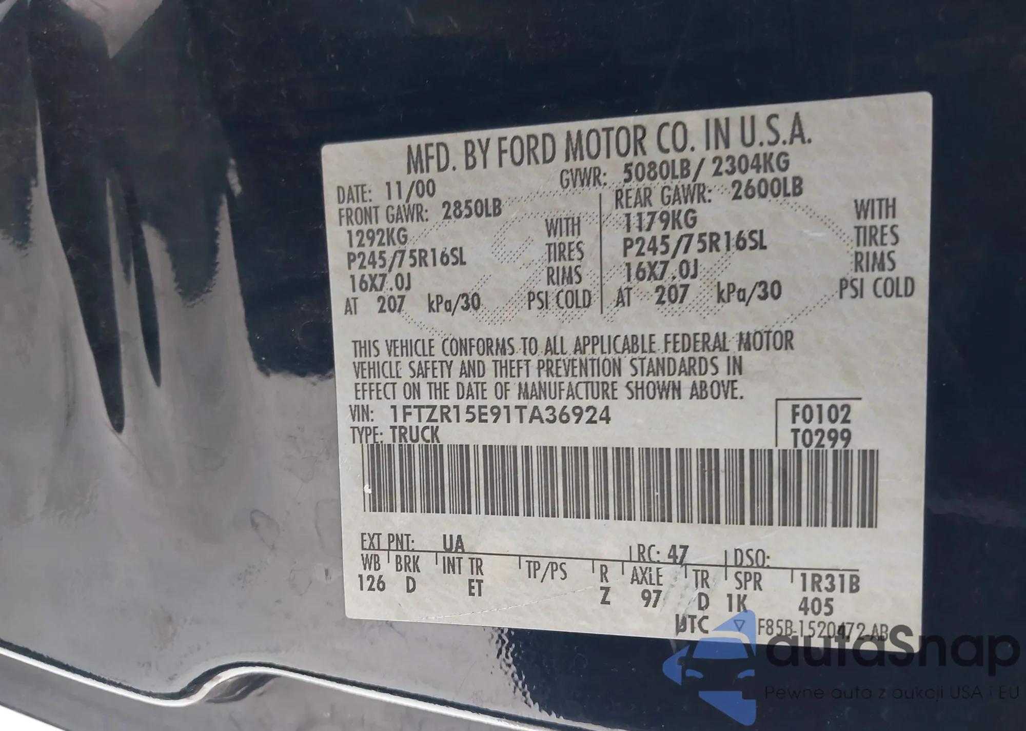 LOT: 41339733 VIN: 1FTZR15E91TA36924