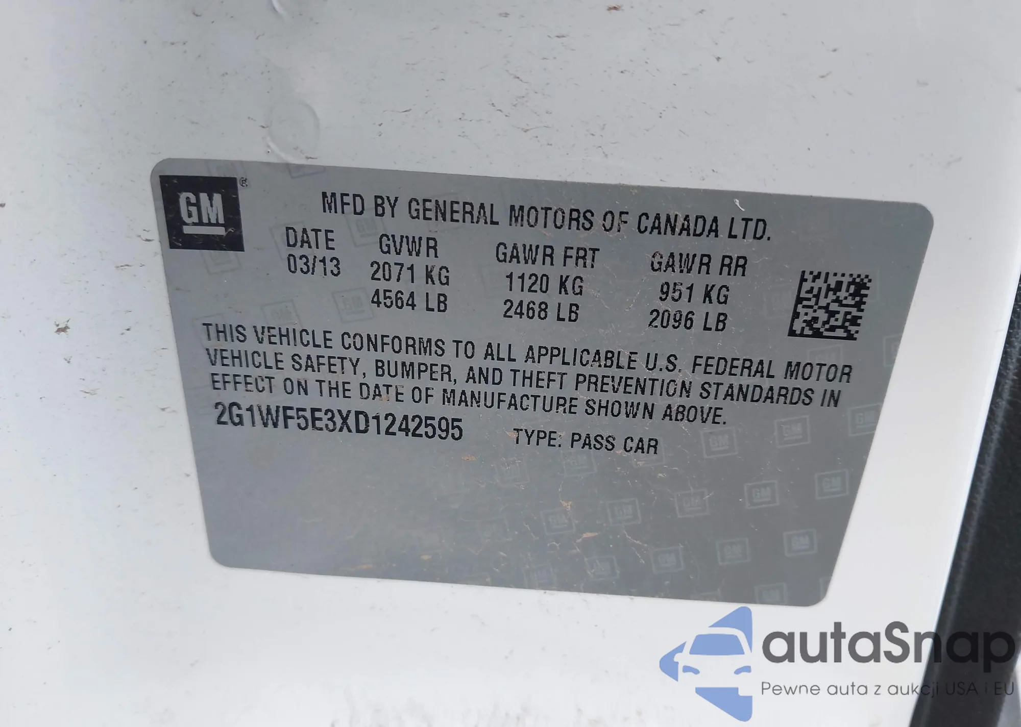 LOT: 42237399 VIN: 2G1WF5E3XD1242595