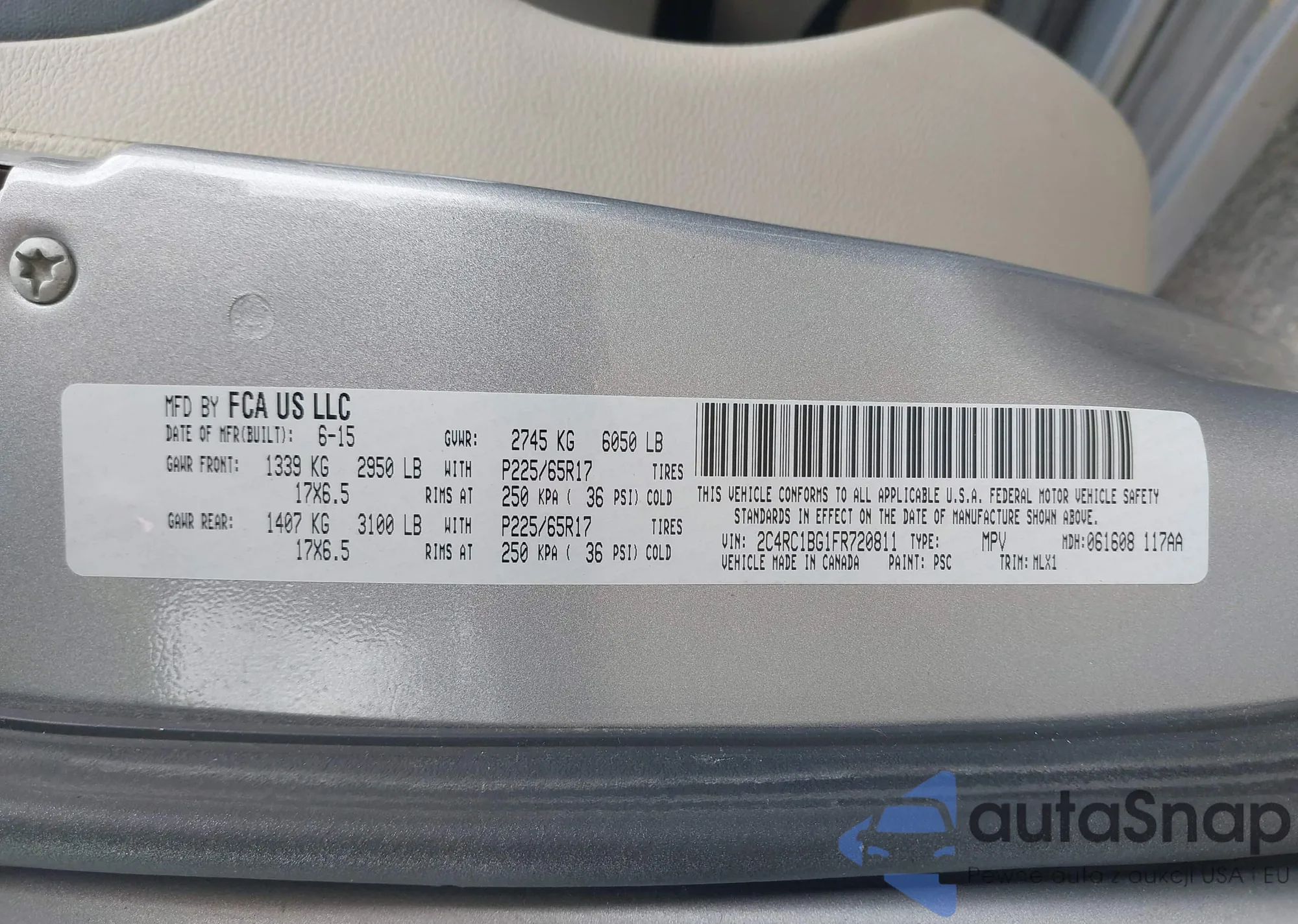 • VIN 2C4RC1BG1FR720811