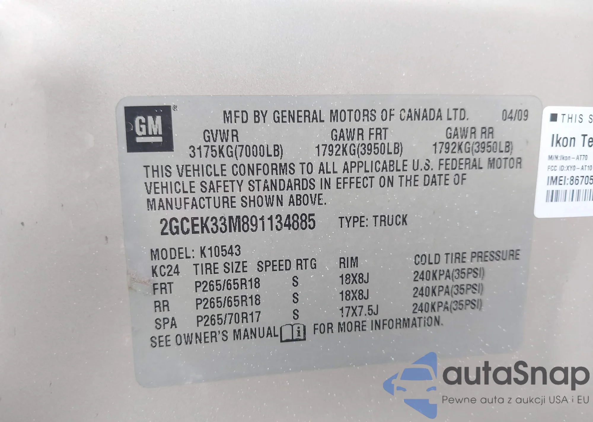 • VIN 2GCEK33M891134885