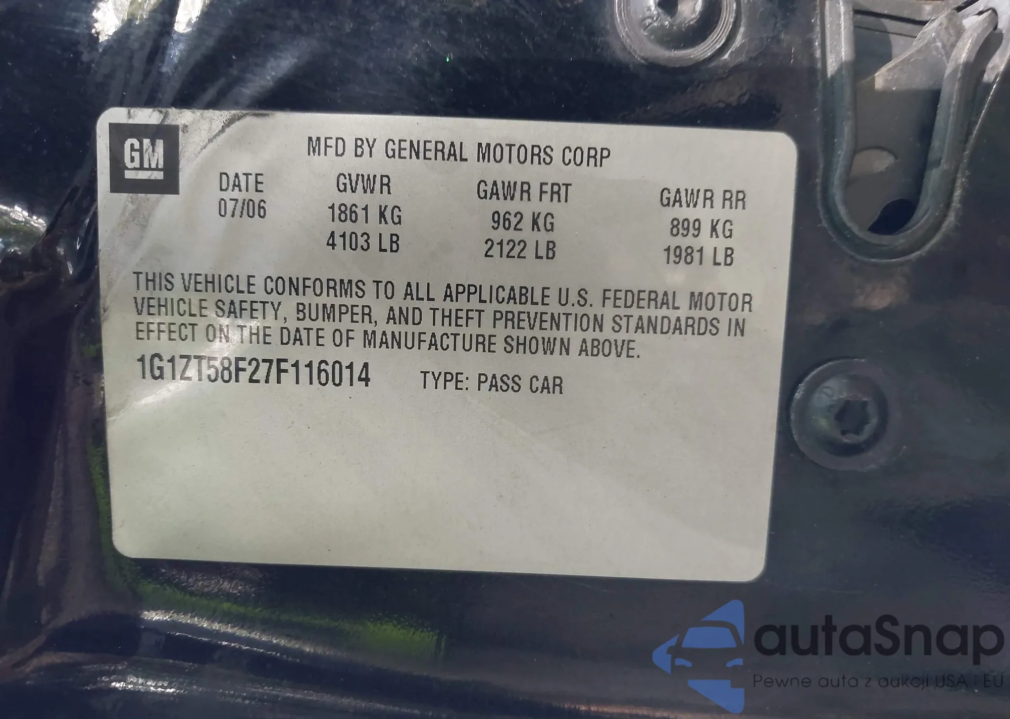 LOT: 42507827 VIN: 1G1ZT58F27F116014