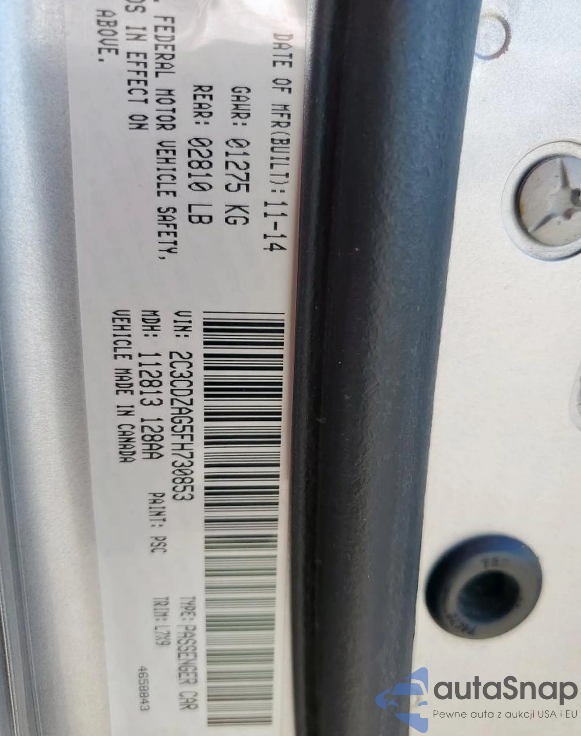 LOT: 58122945 VIN: 2C3CDZAG5FH730853