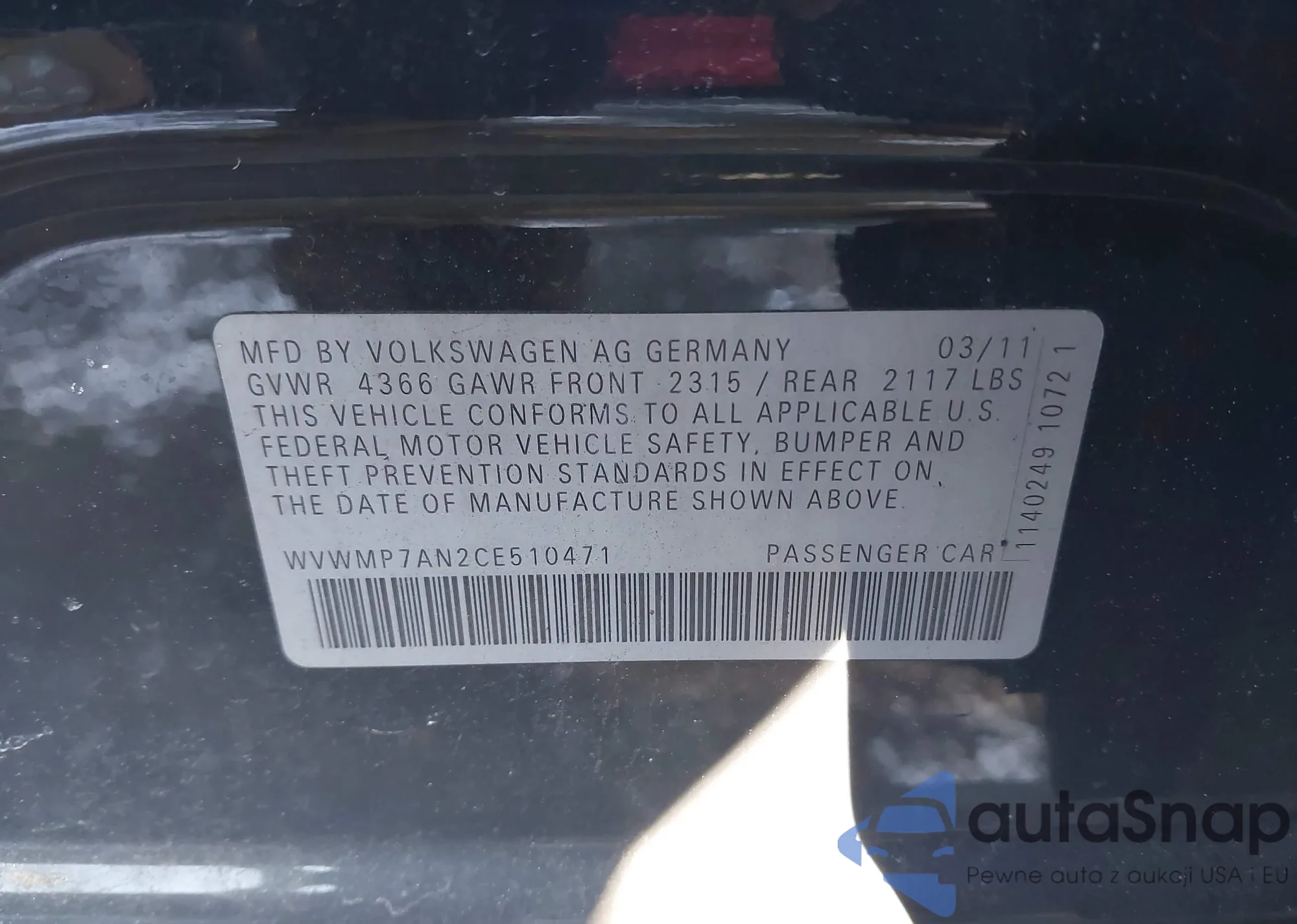 • VIN 3VWDX7AJ7BM304372