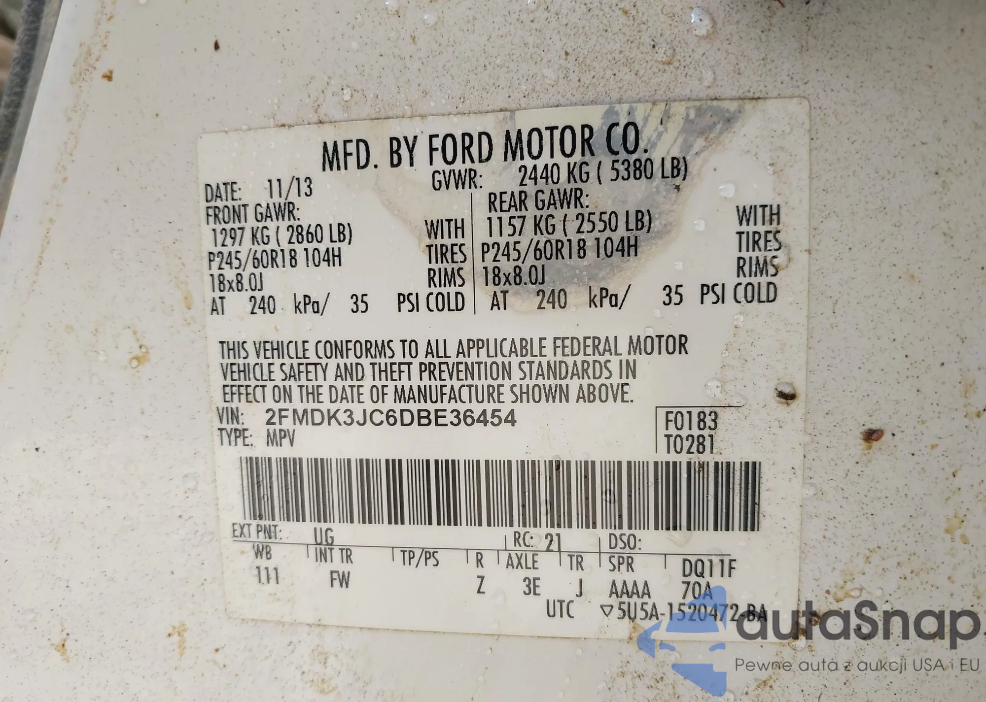 LOT: 40515713 VIN: 2FMDK3JC6DBE36454