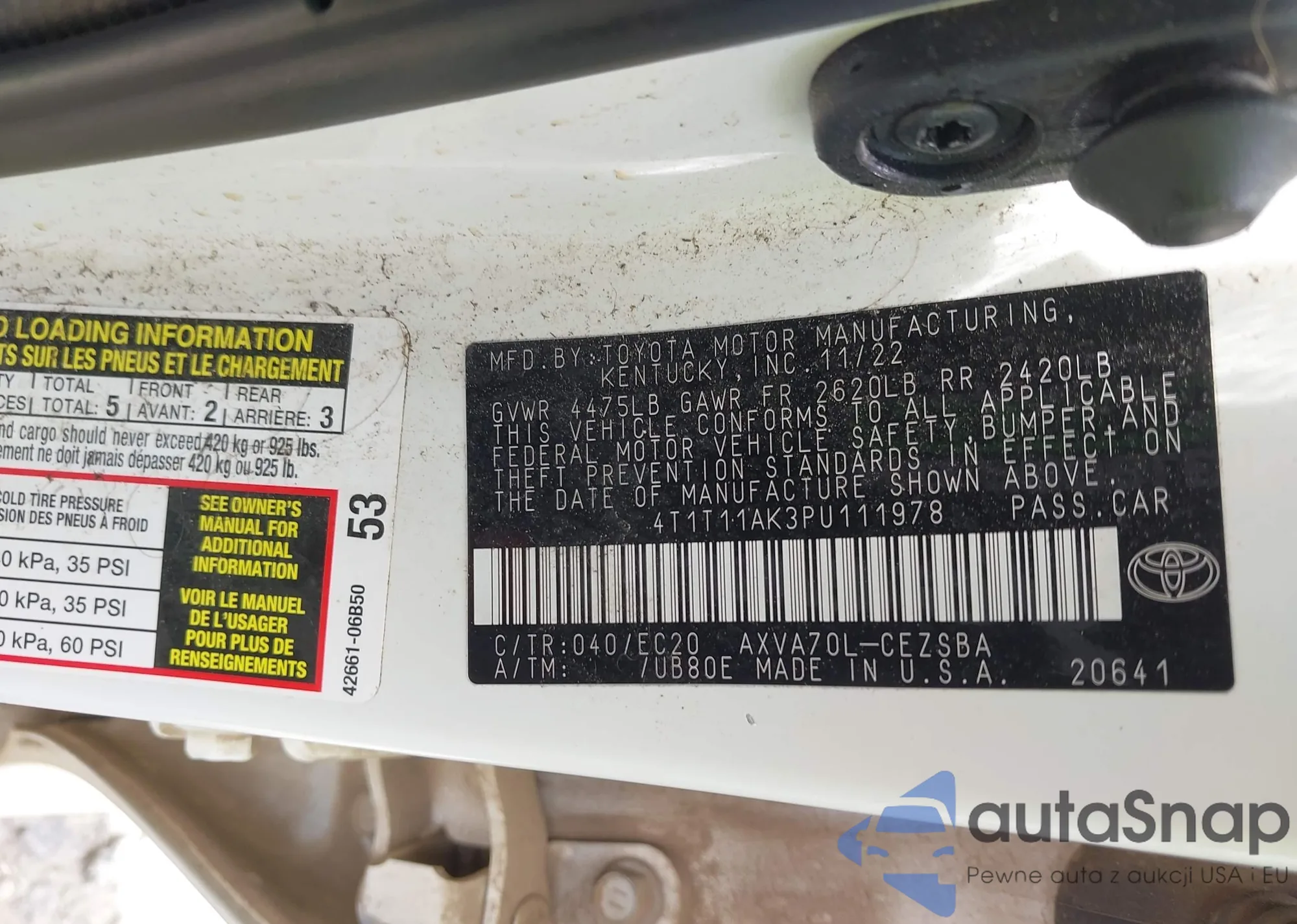 LOT: 42082816 VIN: 2T3Y1RFV3LW068252