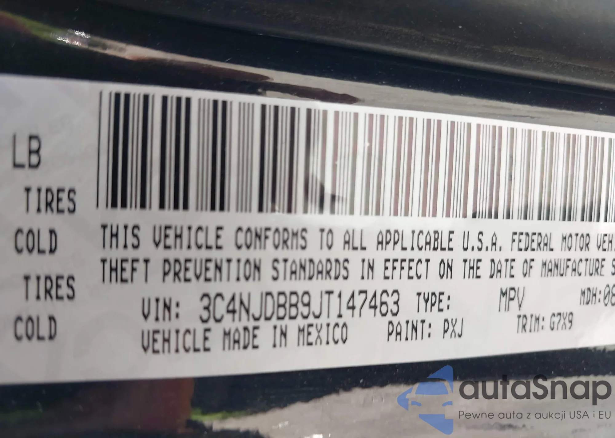 • VIN 3C4NJDBB9JT147463