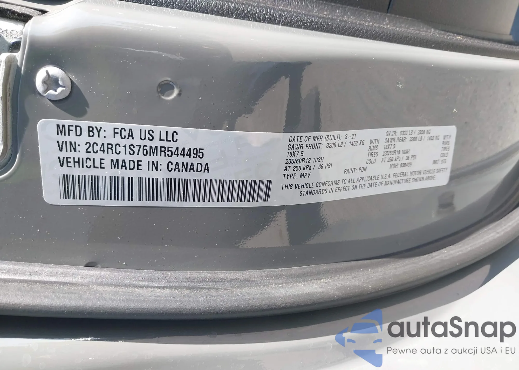 • VIN 2C4RC1S76MR544495