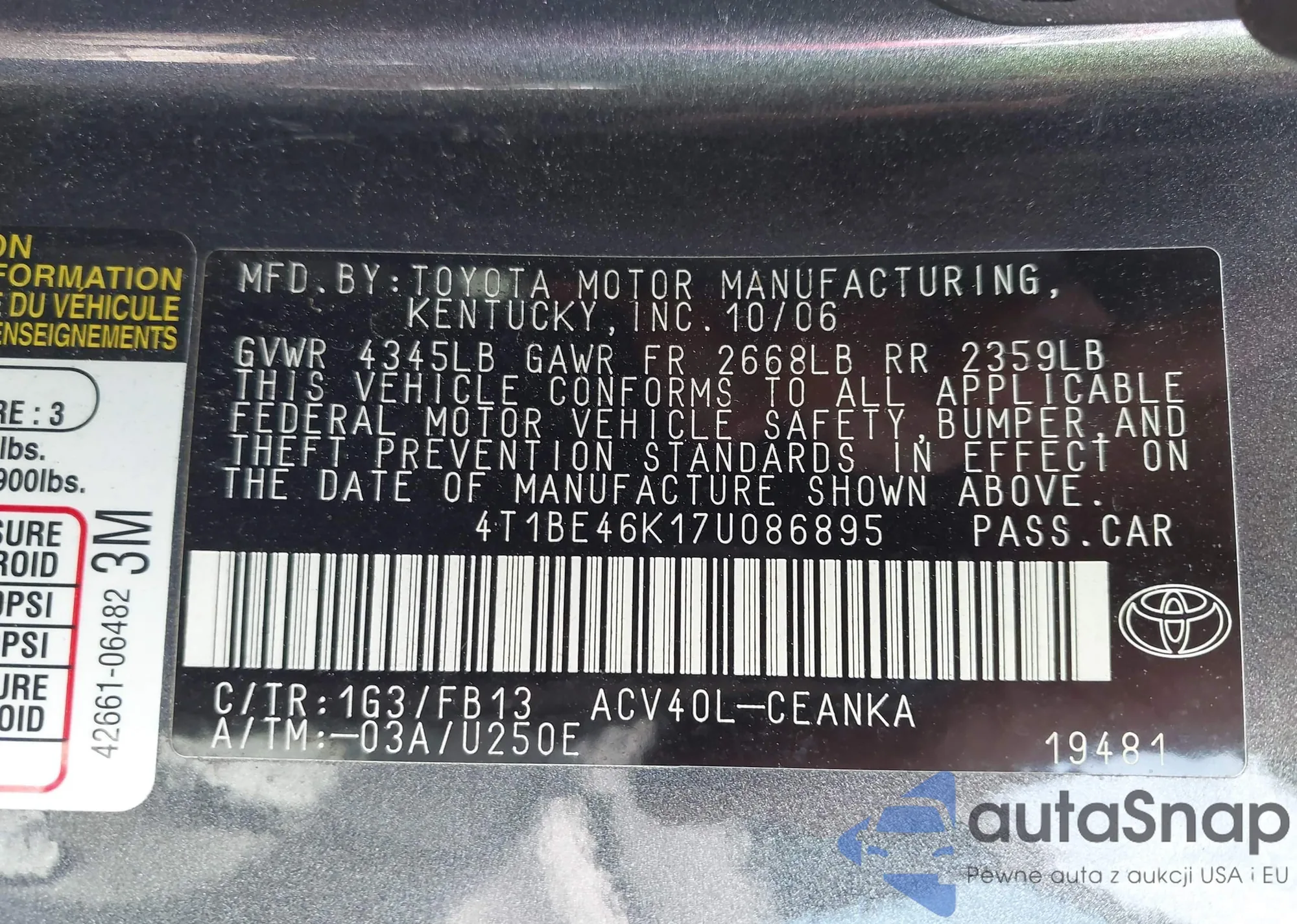 • VIN 4T1BE46K17U086895