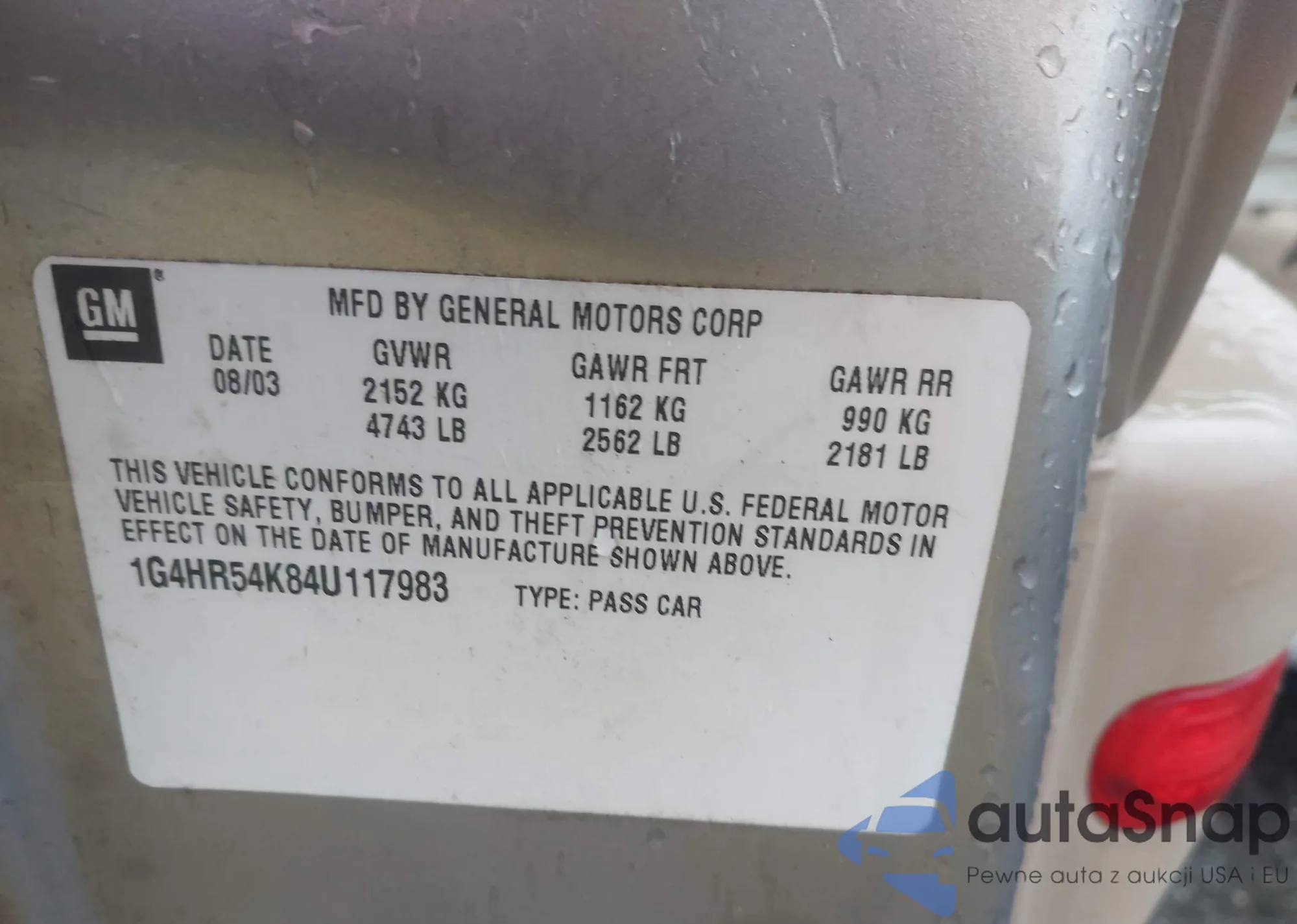 • VIN 1G4HR54K84U117983