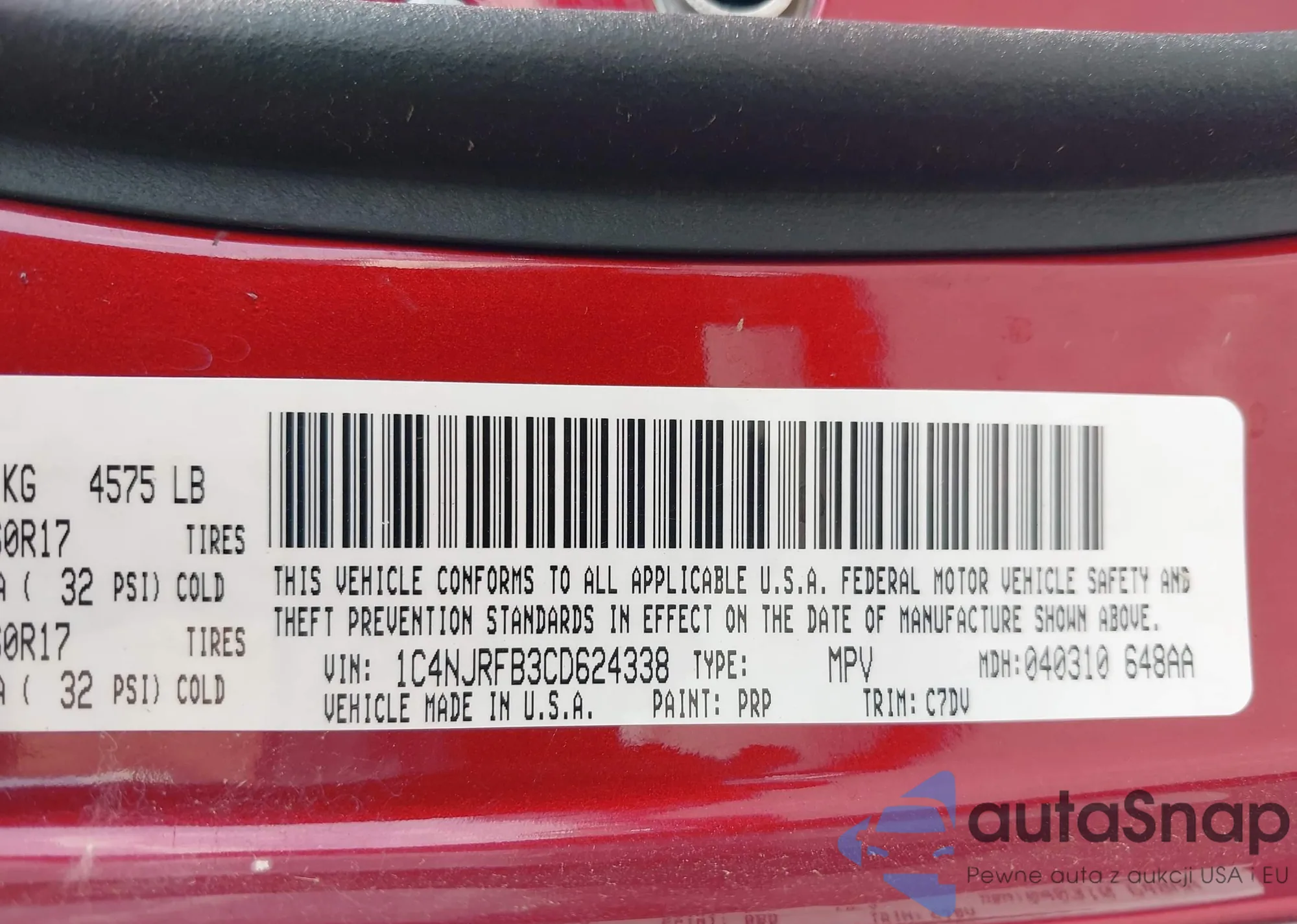 LOT: 40301051 VIN: 1C4NJRFB3CD624338