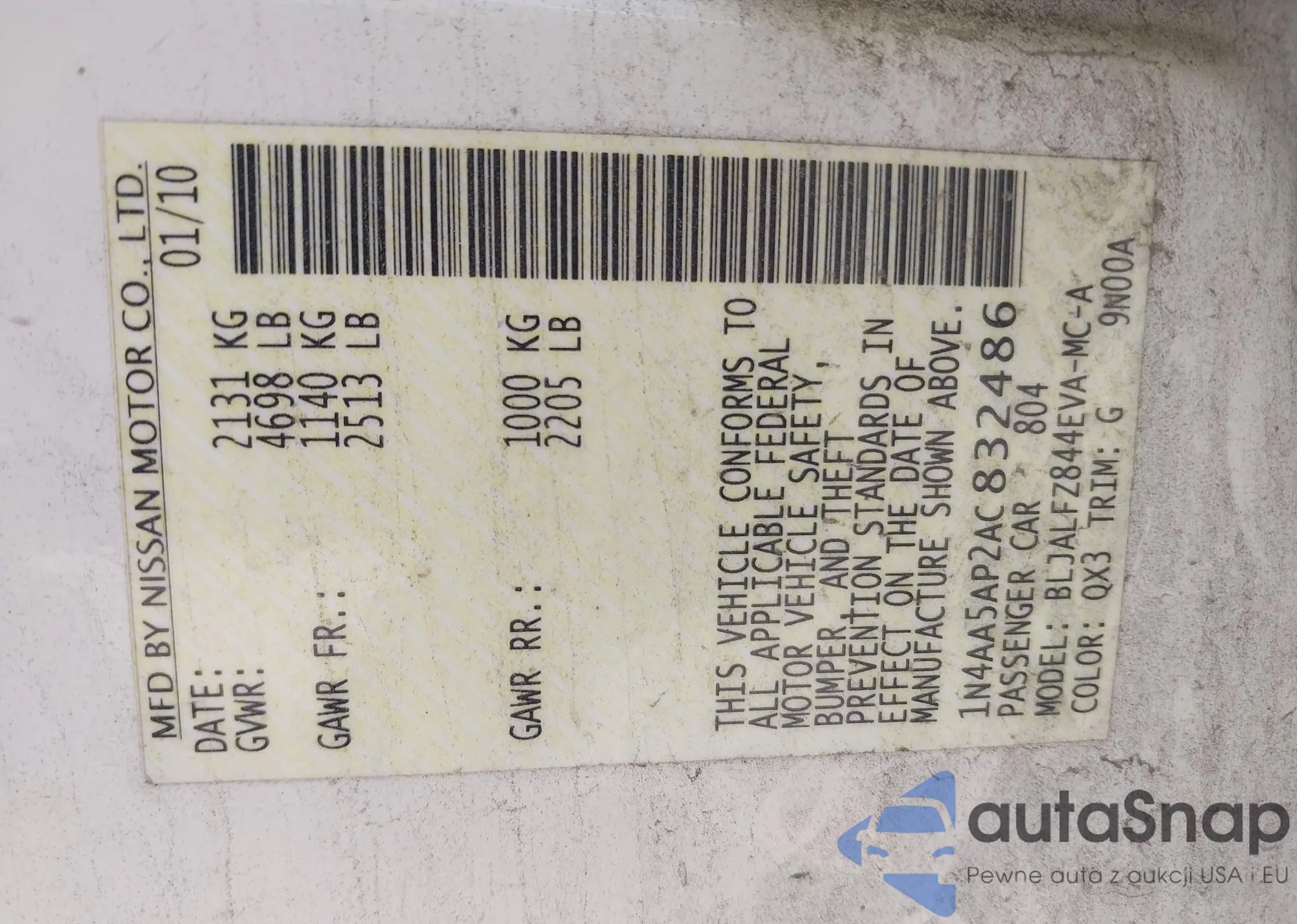 LOT: 42490328 VIN: 1N4AA5AP2AC832486