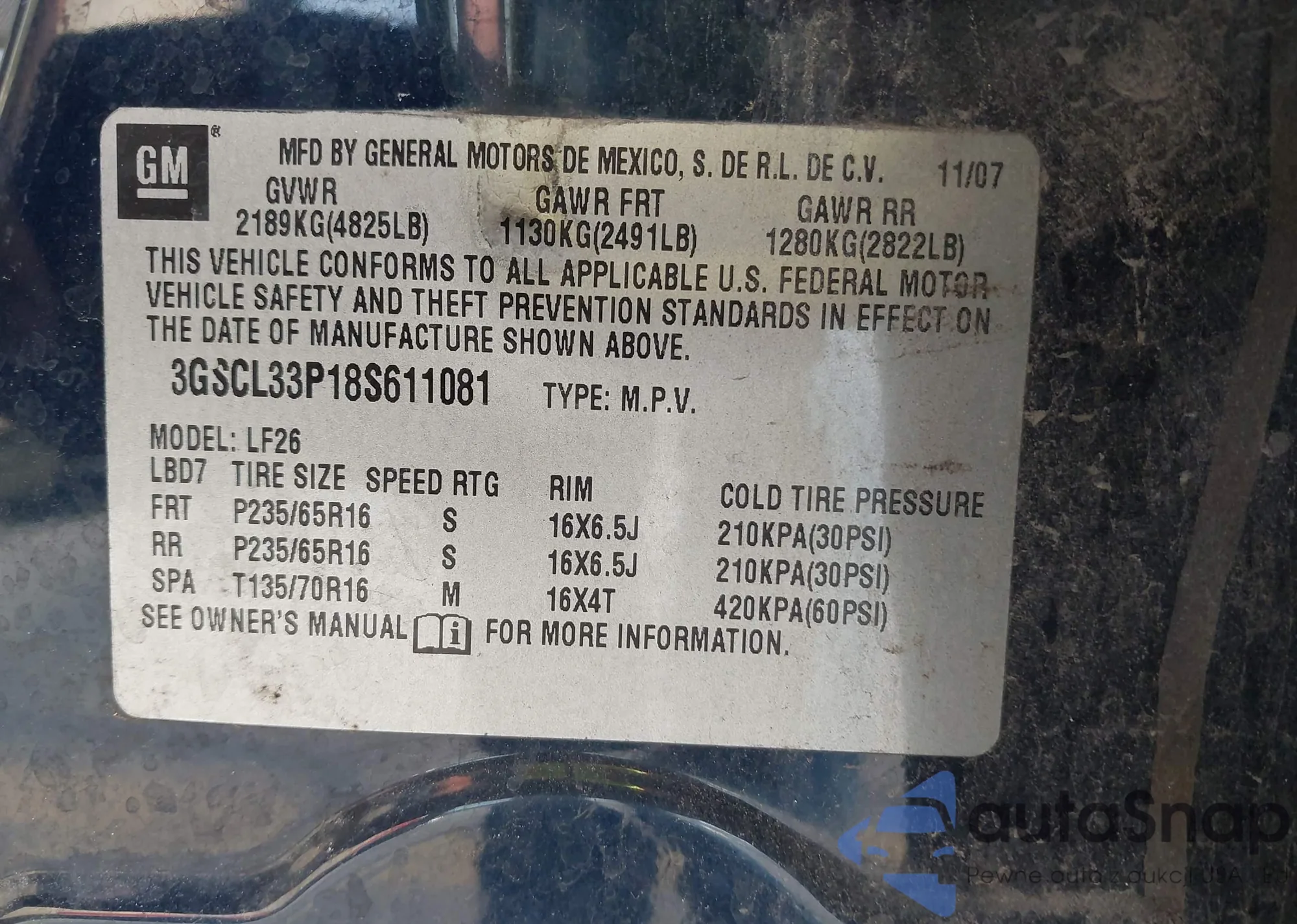 • VIN 3GSCL33P18S611081