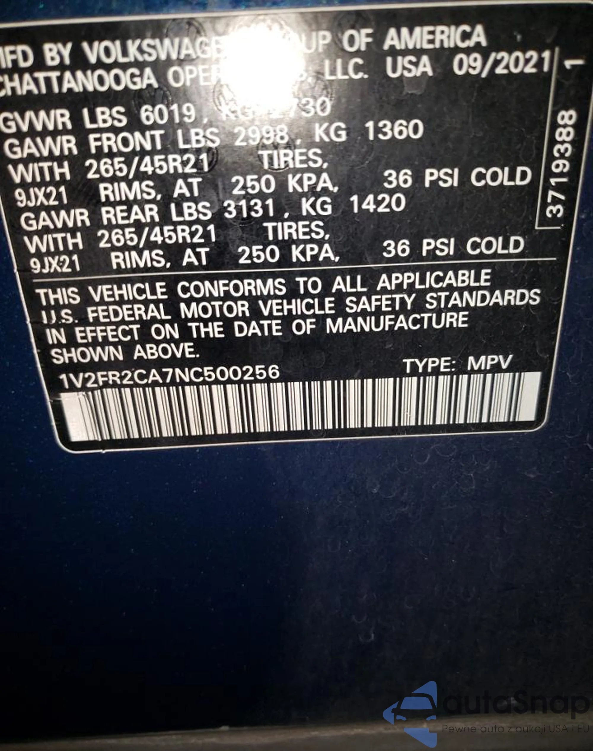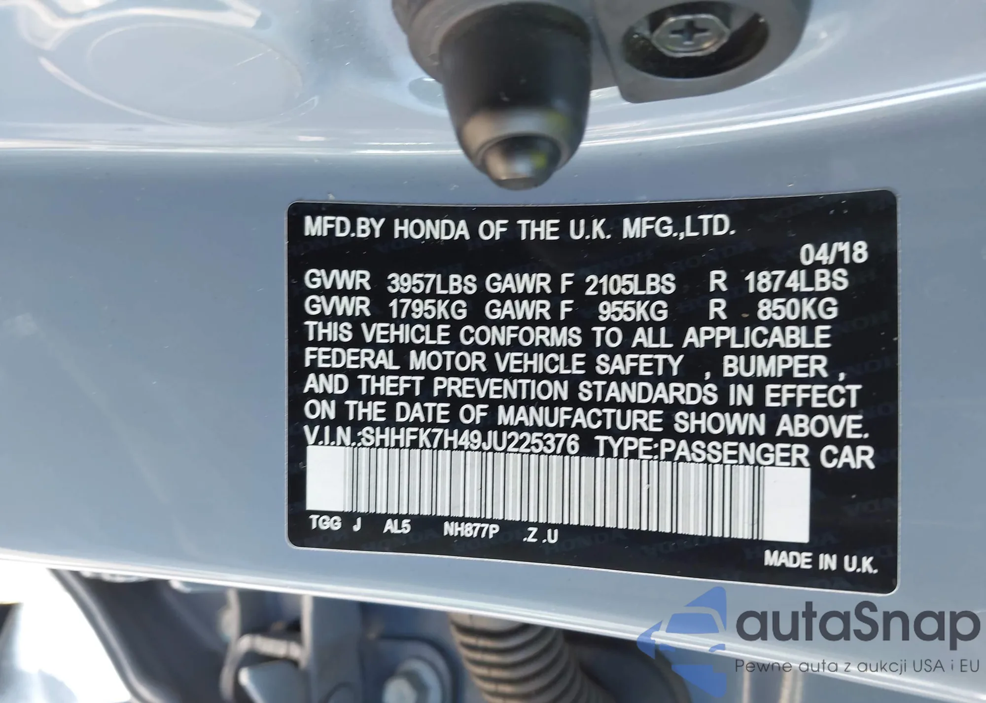 • VIN SHHFK7H49JU225376