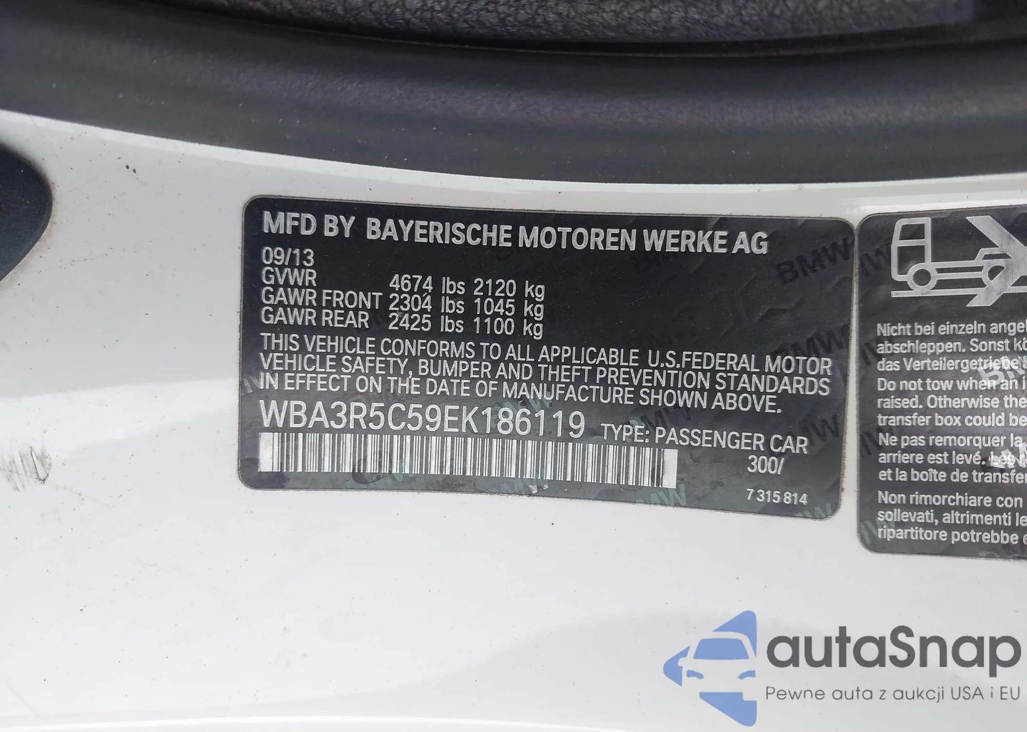 LOT: 41968020 VIN: WBA3R5C59EK186119