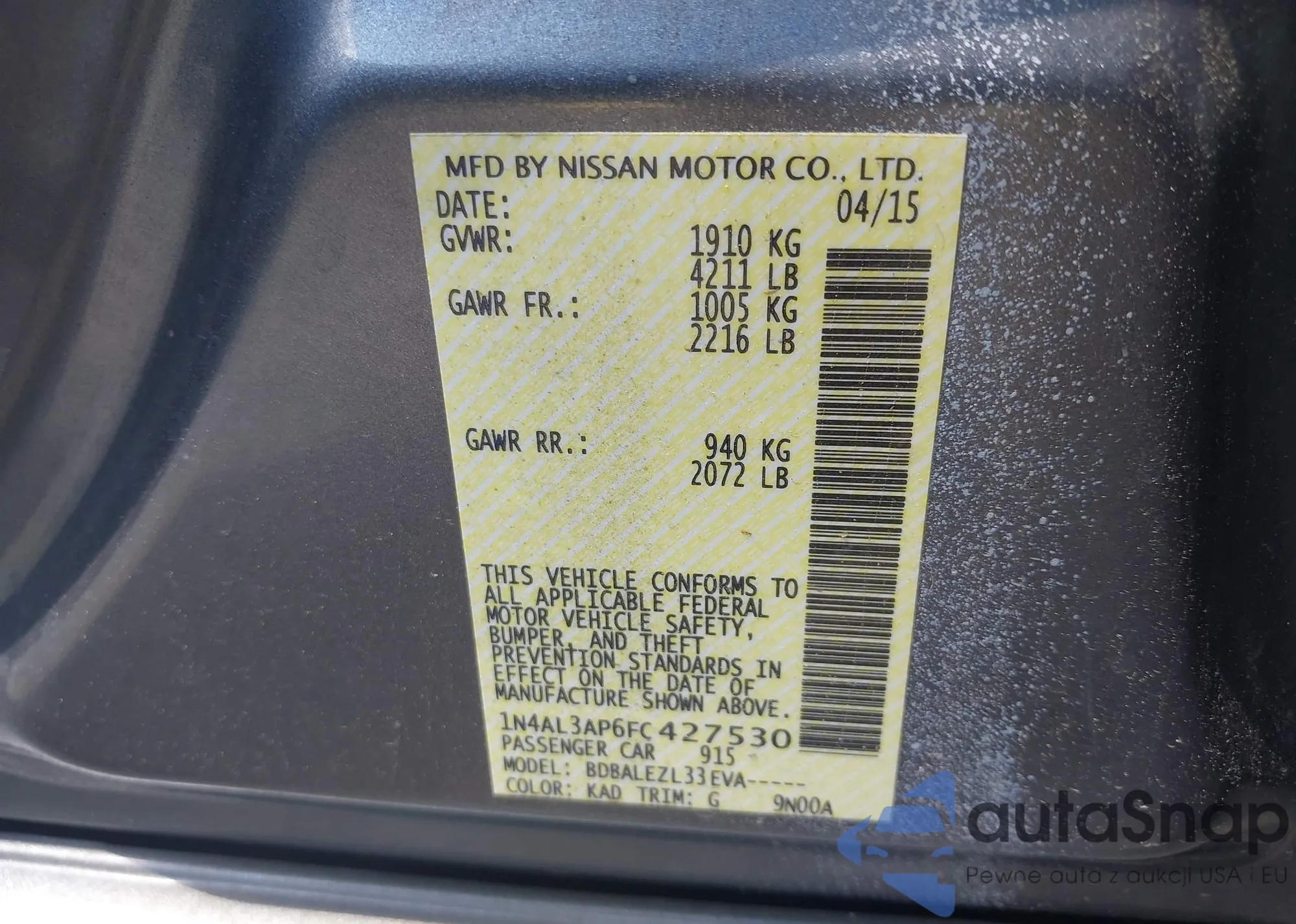 • VIN 1N4AL3AP6FC427530