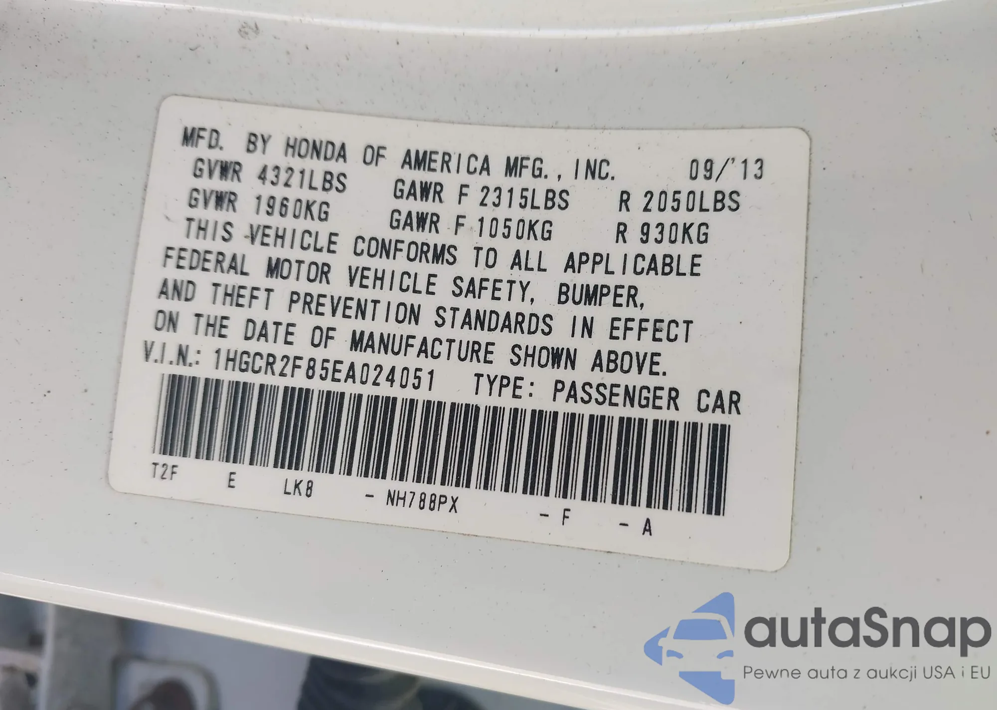 • VIN 1HGCV1F33JA105358