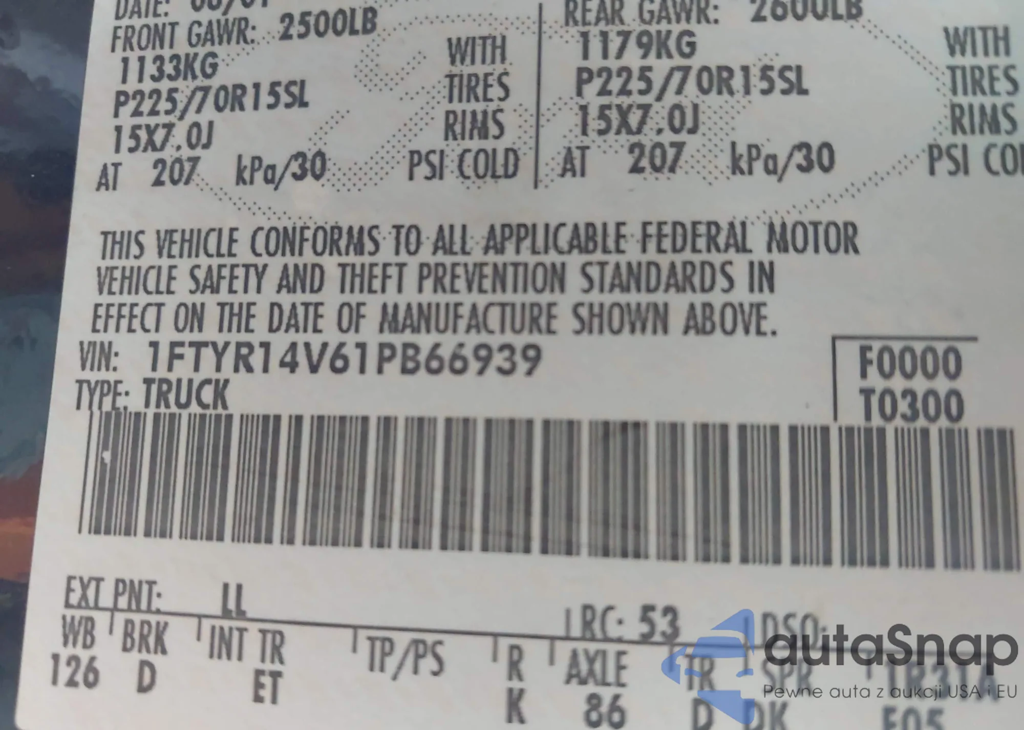 LOT: 42170539 VIN: 1FTYR14V61PB66939