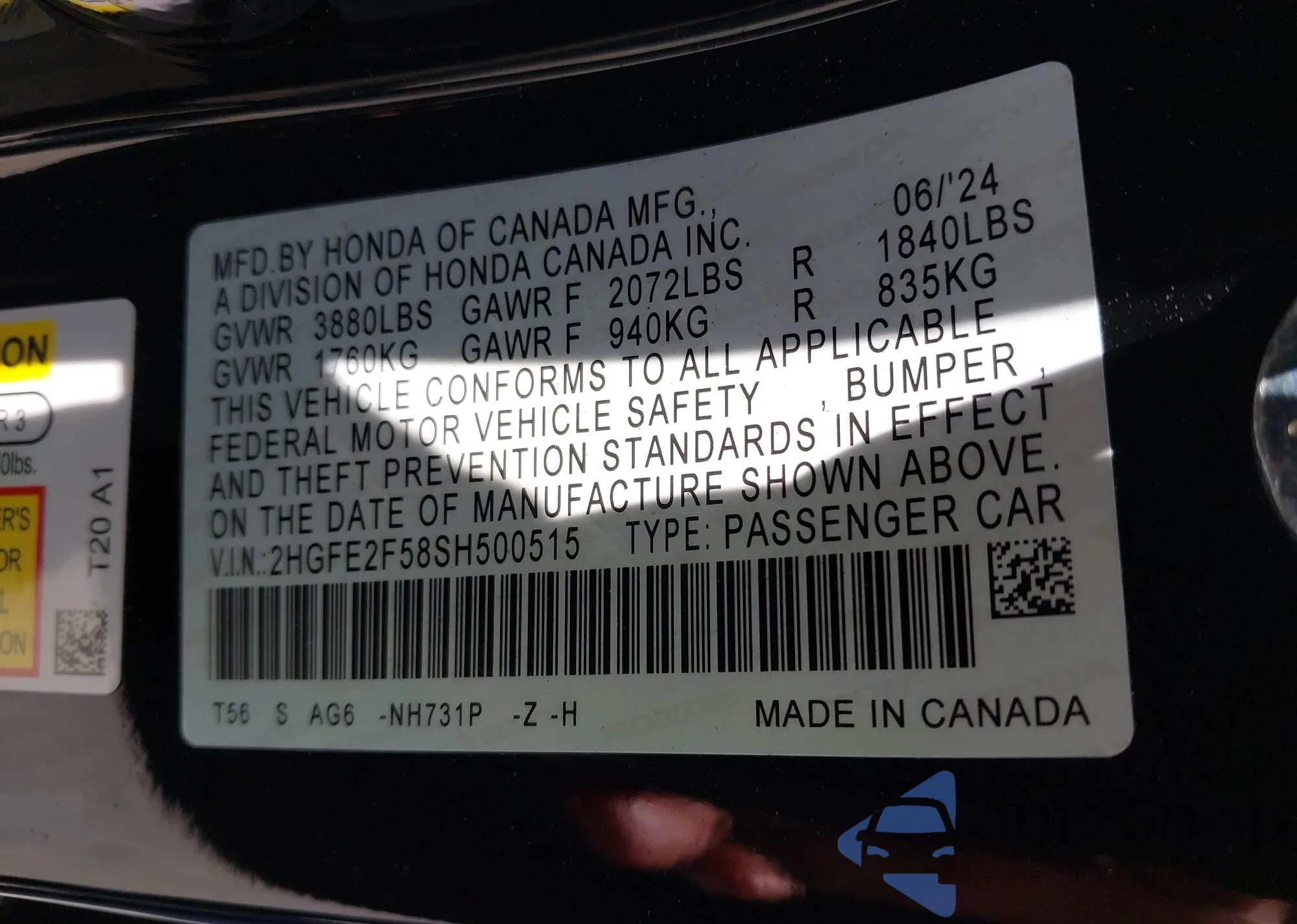 • VIN 2HGFE2F58SH500515