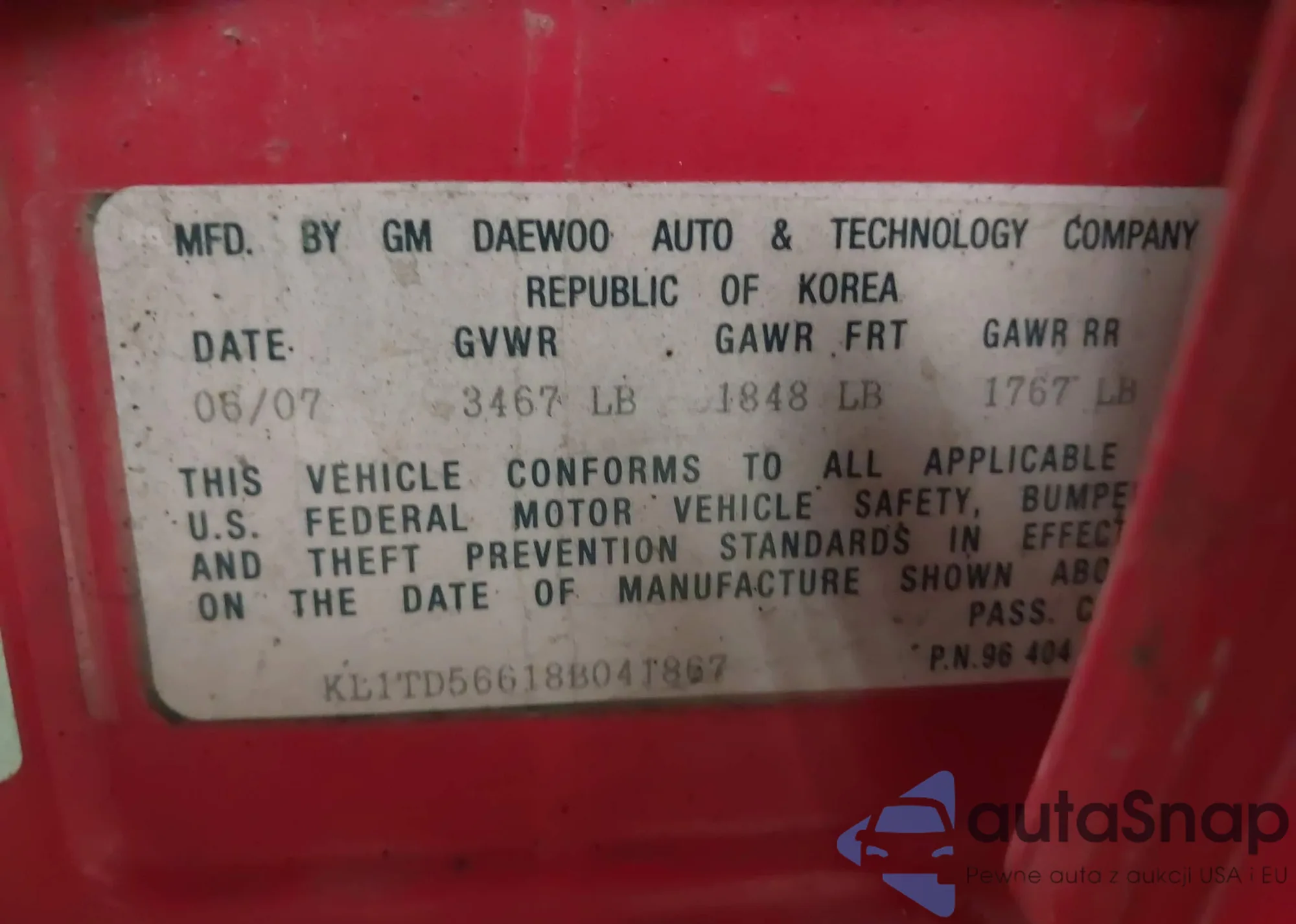 LOT: 42208722 VIN: KL1TD56618B041867
