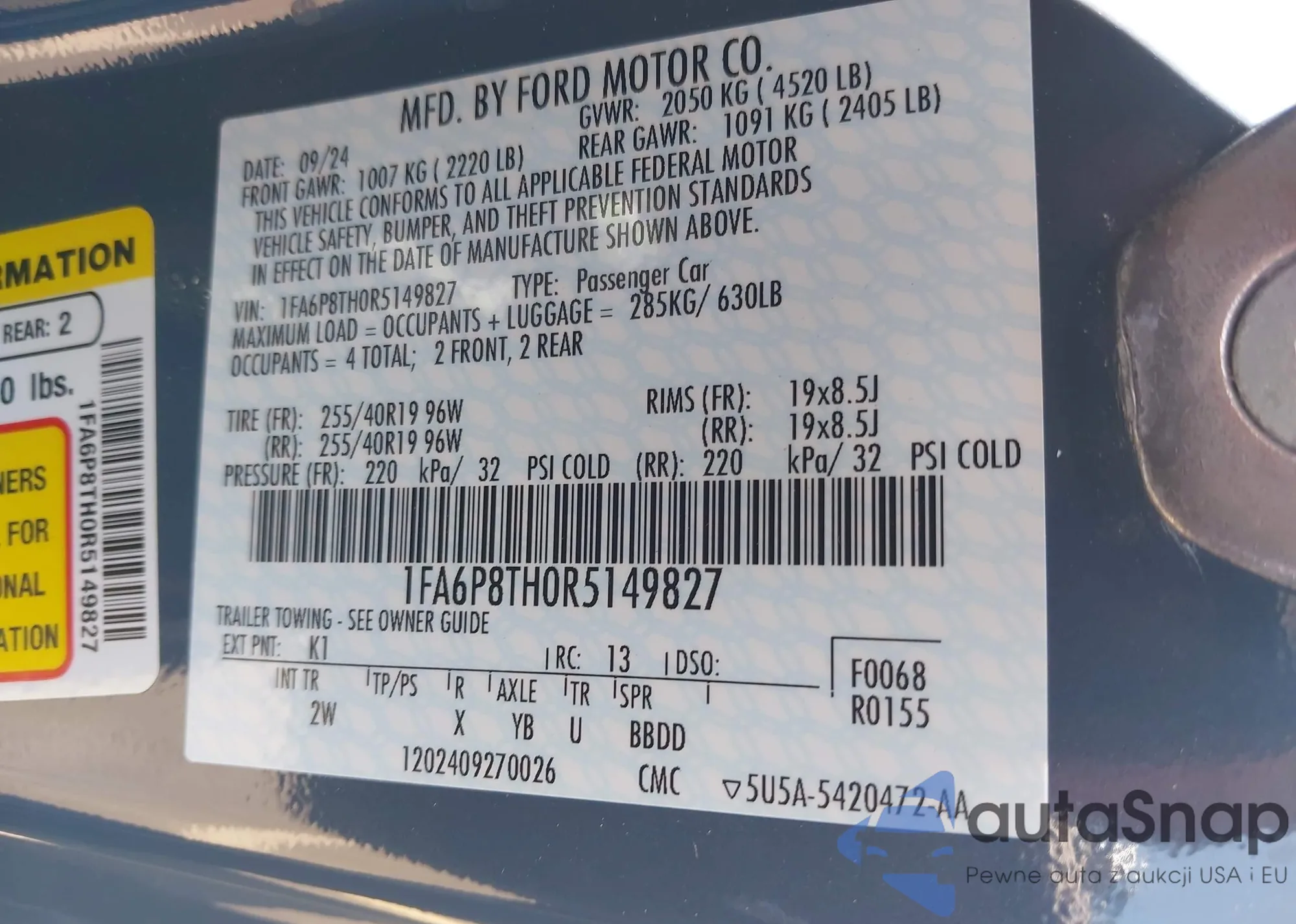 • VIN 1FA6P8TH0R5149827