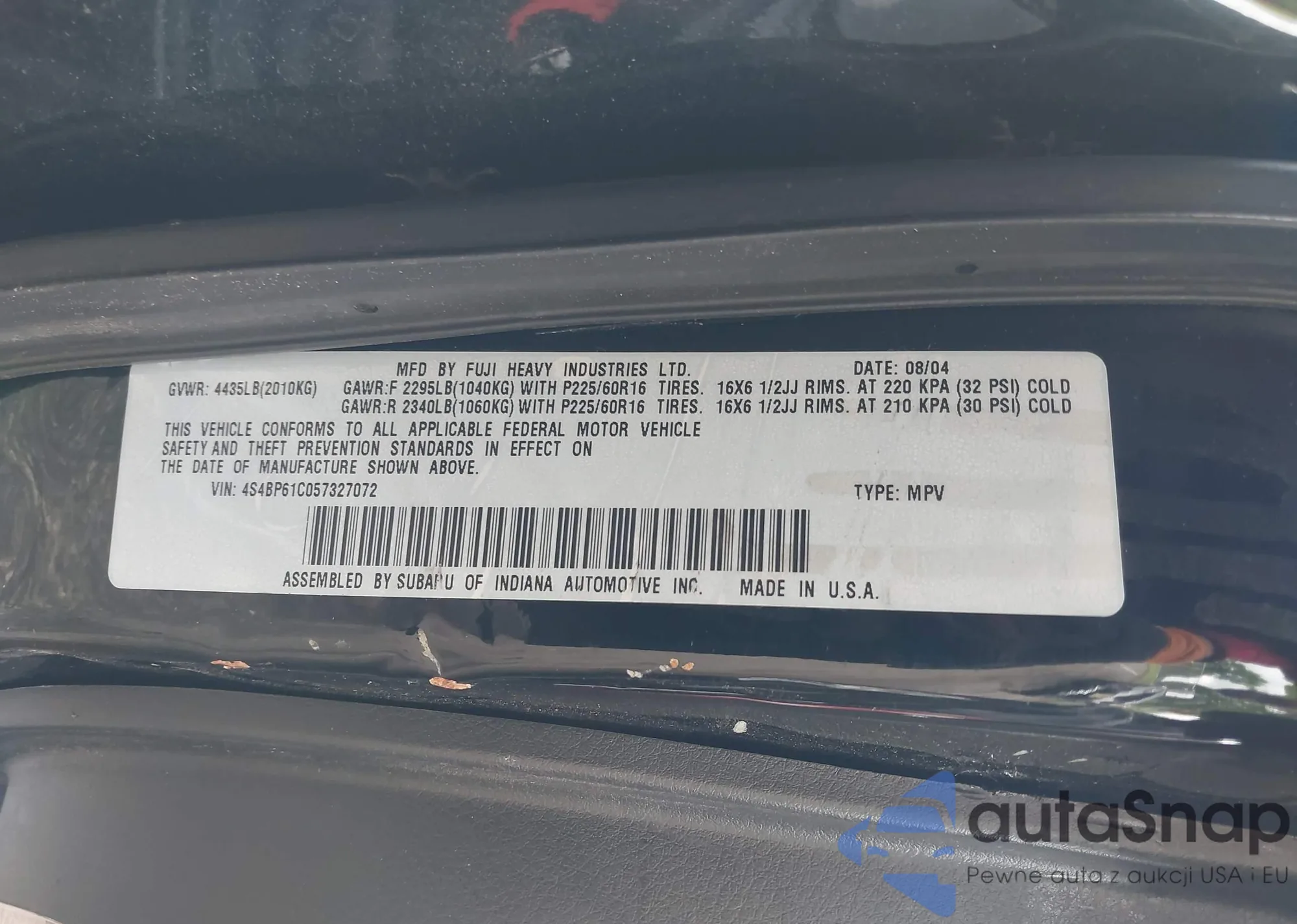 • VIN 4S4BP61C057327072