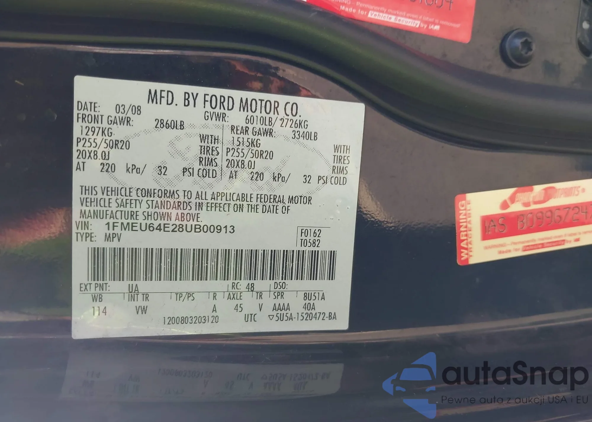 • VIN 1FMEU64E28UB00913