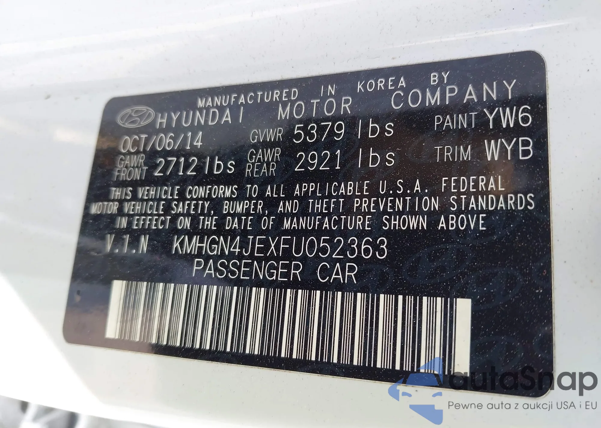 LOT: 42149337 VIN: KMHGN4JEXFU052363