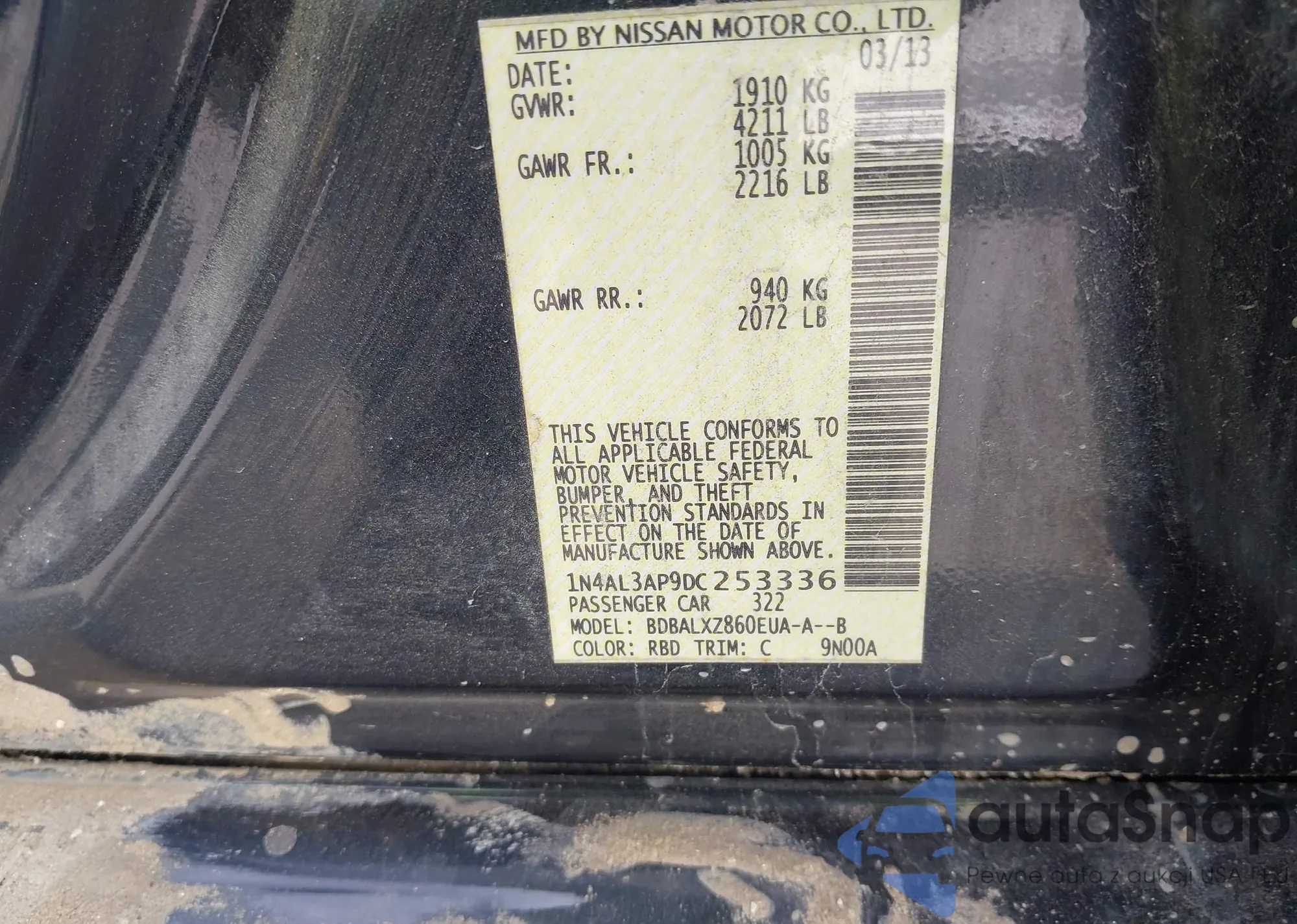 LOT: 42383369 VIN: 1N4AL3AP9DC253336