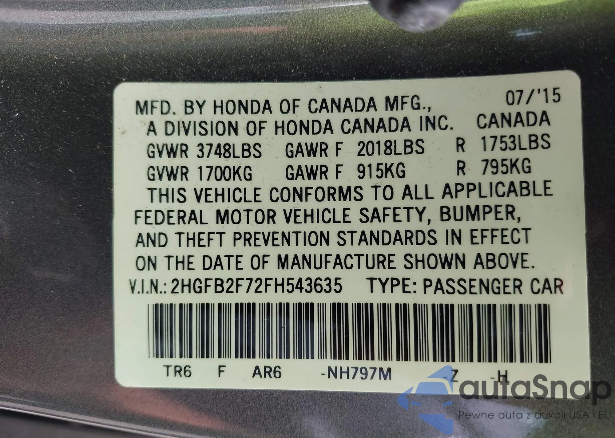 LOT: 42406342 VIN: 1HGCV1F1XJA241162