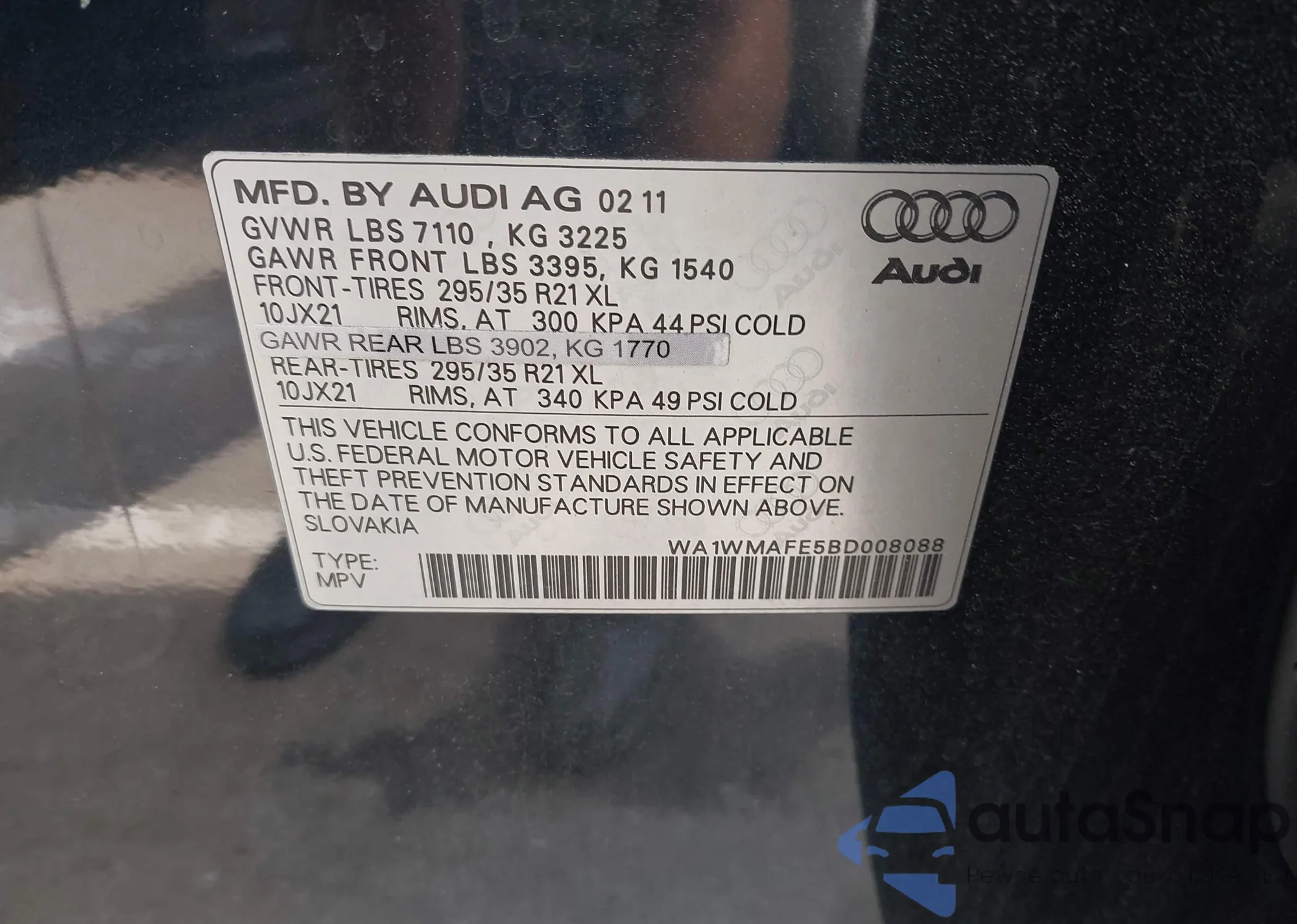 • VIN WA1WMAFE5BD008088
