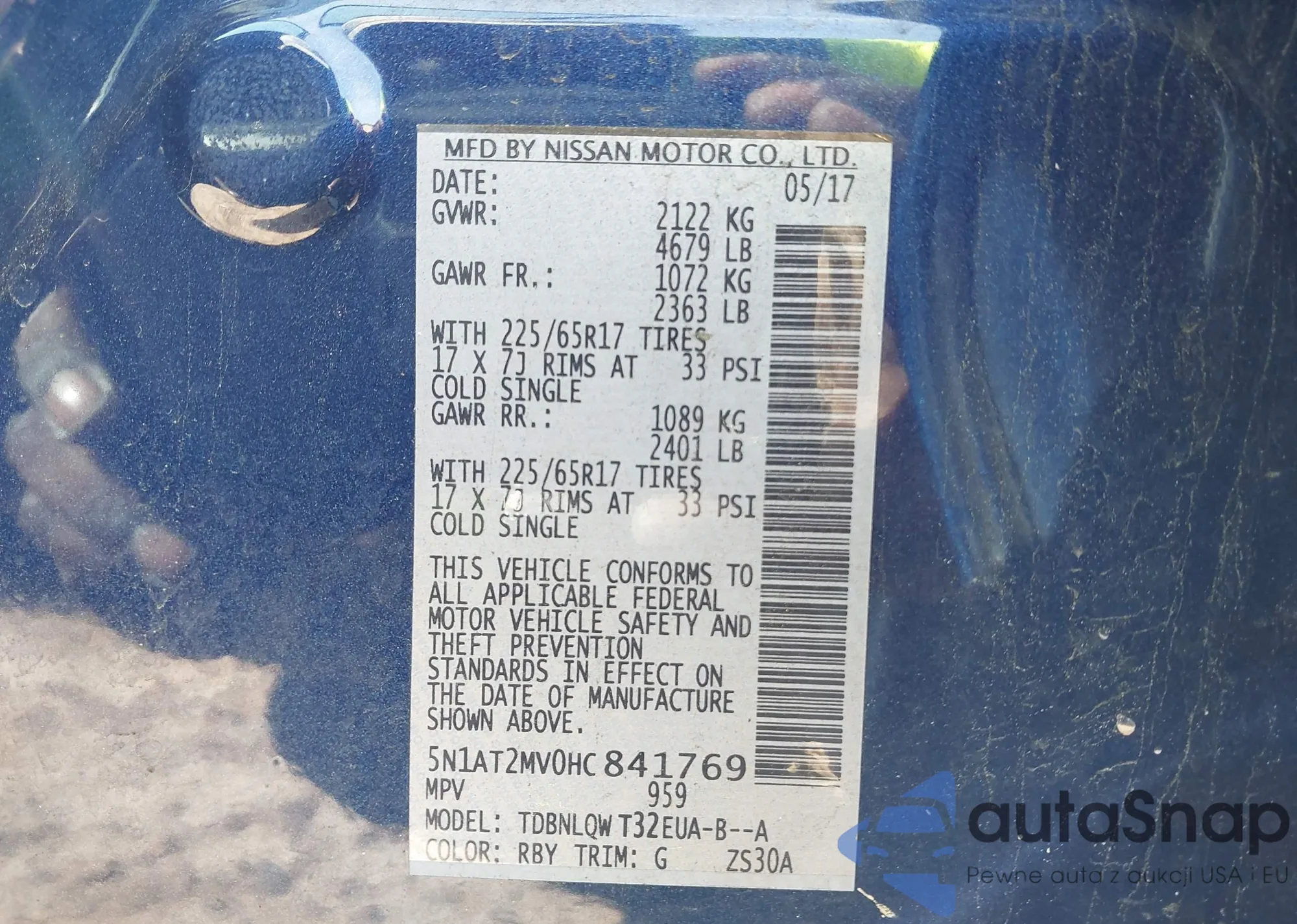 • VIN 5N1AT2MV0HC841769