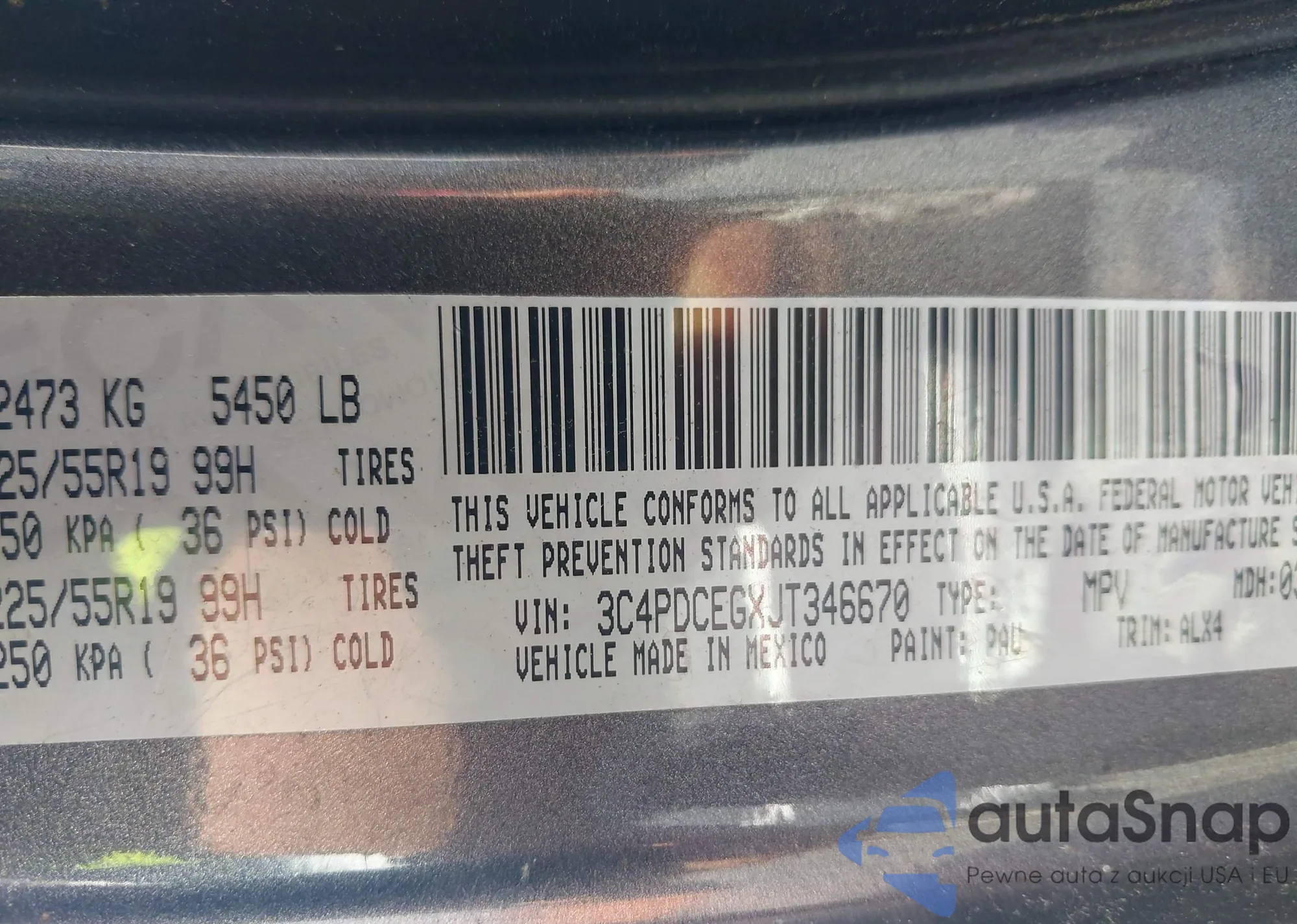 LOT: 42317716 VIN: 3C4PDCEGXJT346670