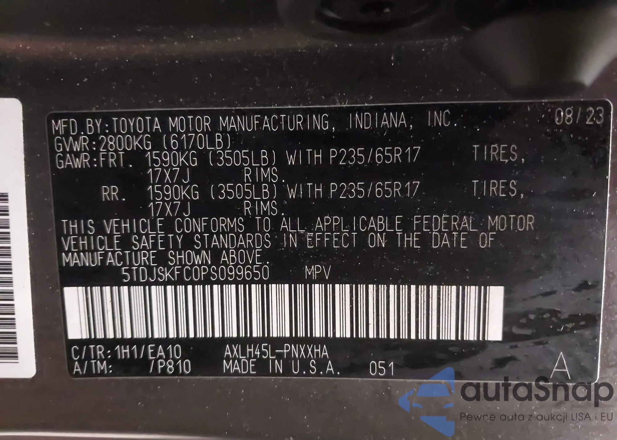 • VIN 5TDDZ3DC6HS147381