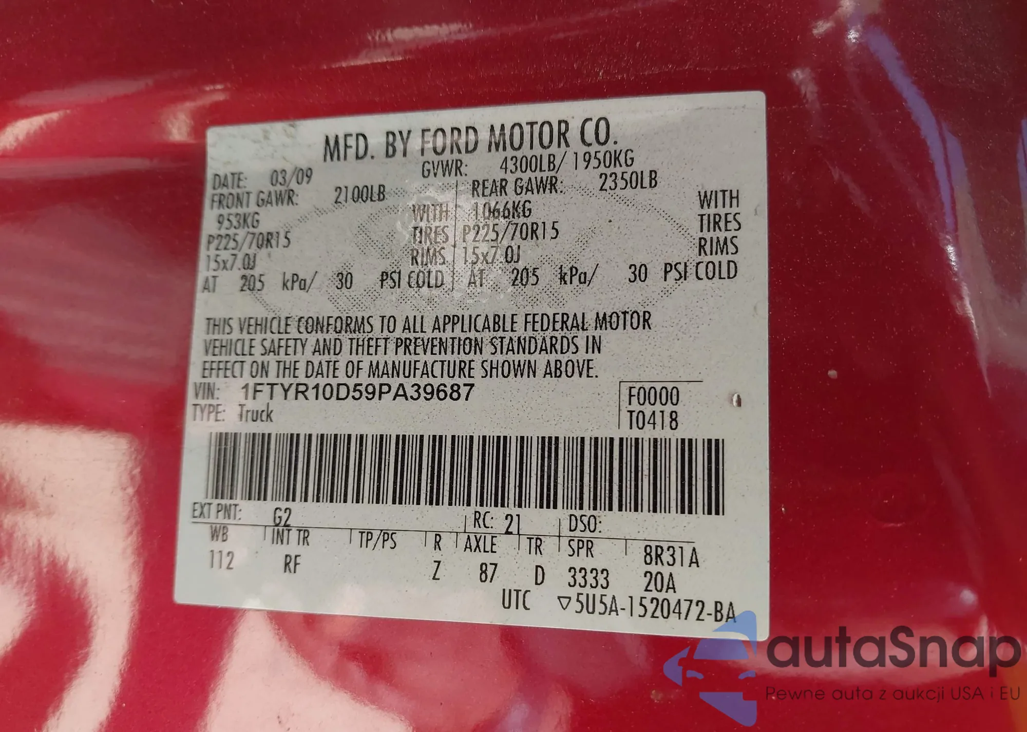 • VIN 1FADP5BU6DL504301