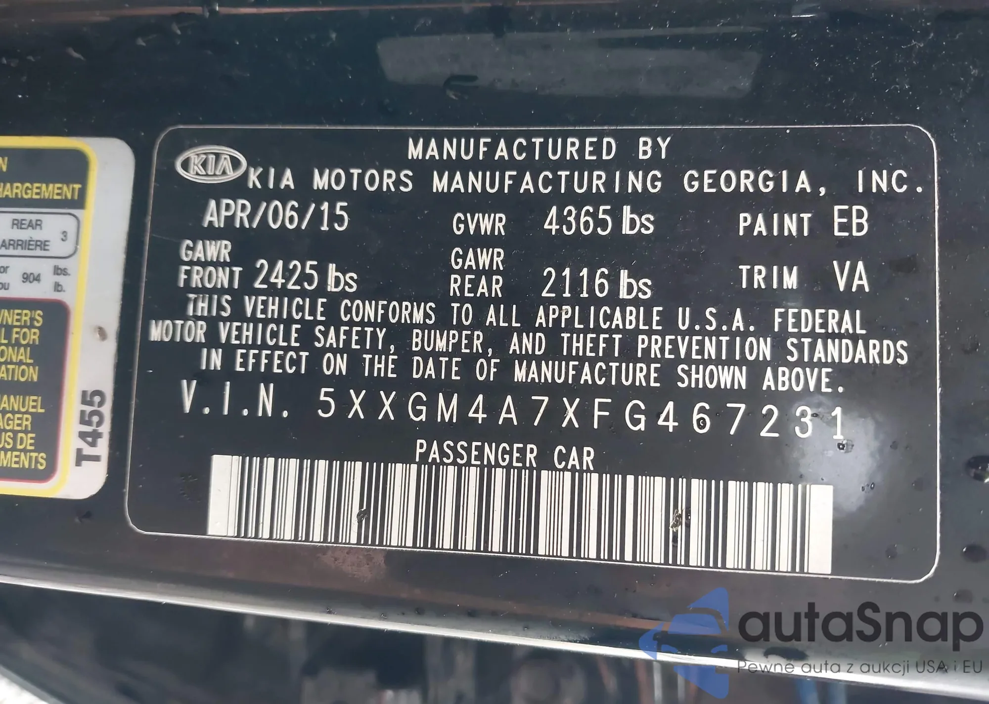 LOT: 42242665 VIN: 5XXGT4L35JG236923