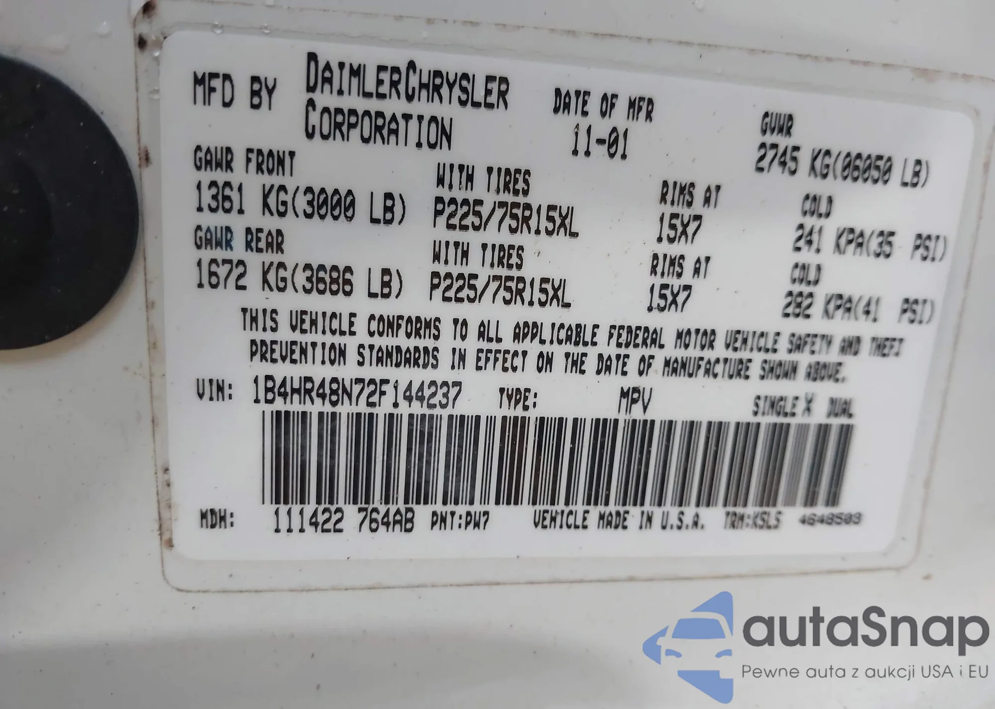 • VIN 1B4HR48N72F144237