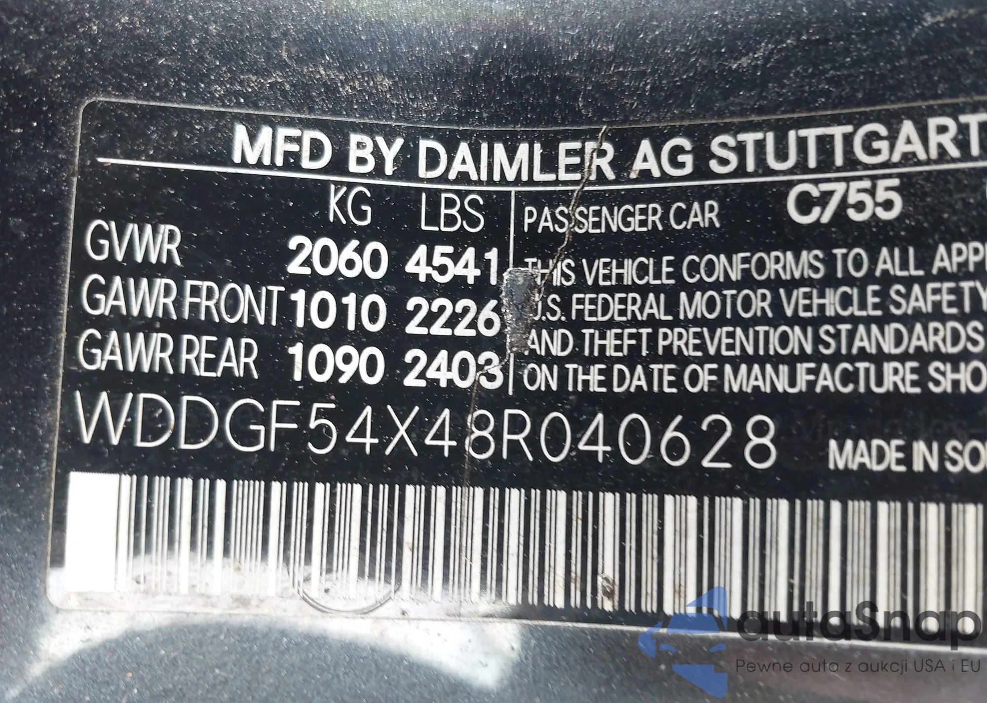 LOT: 42401508 VIN: WDDGF54X48R040628
