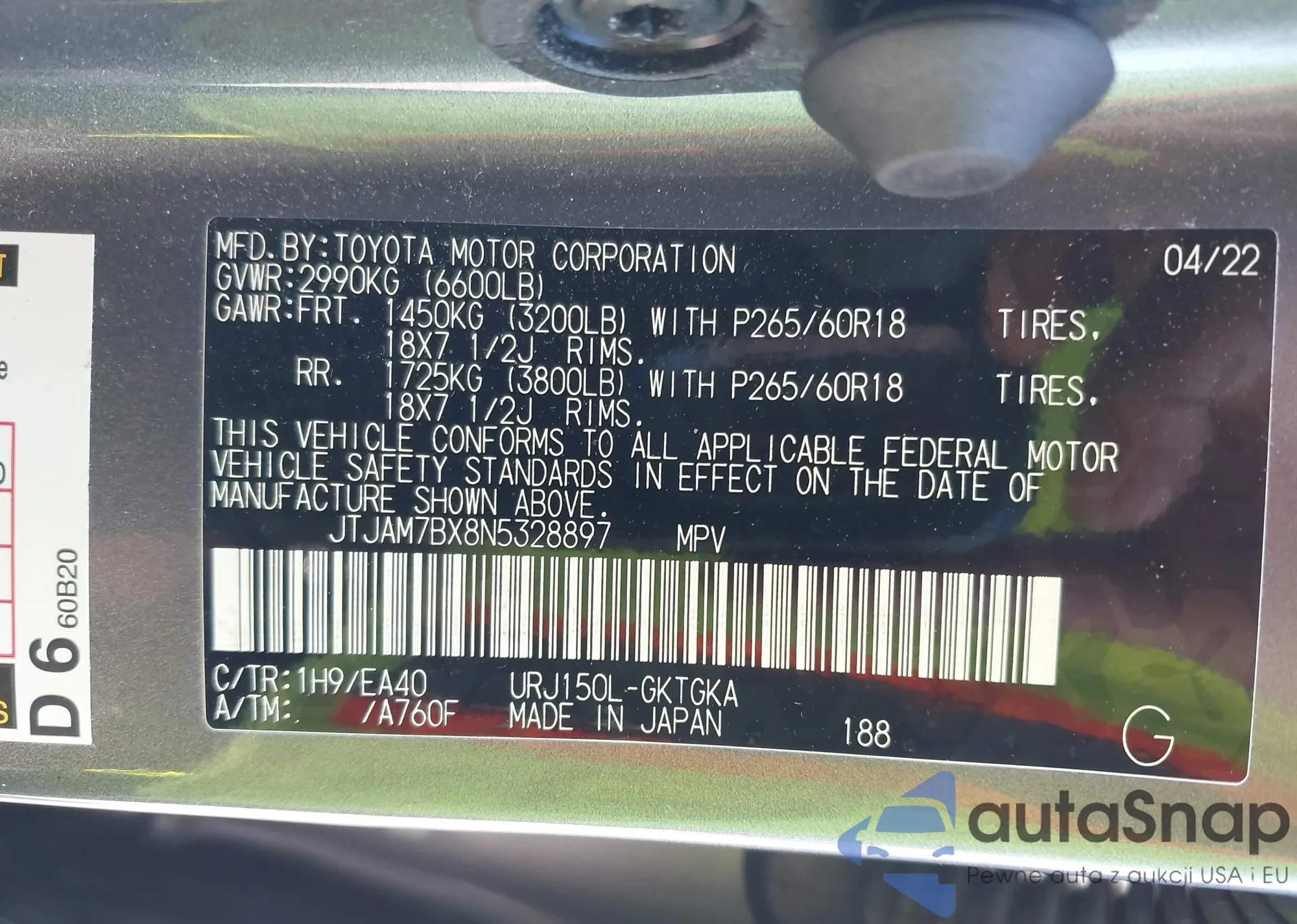 LOT: 42058548 VIN: JTJAM7BX8N5328897