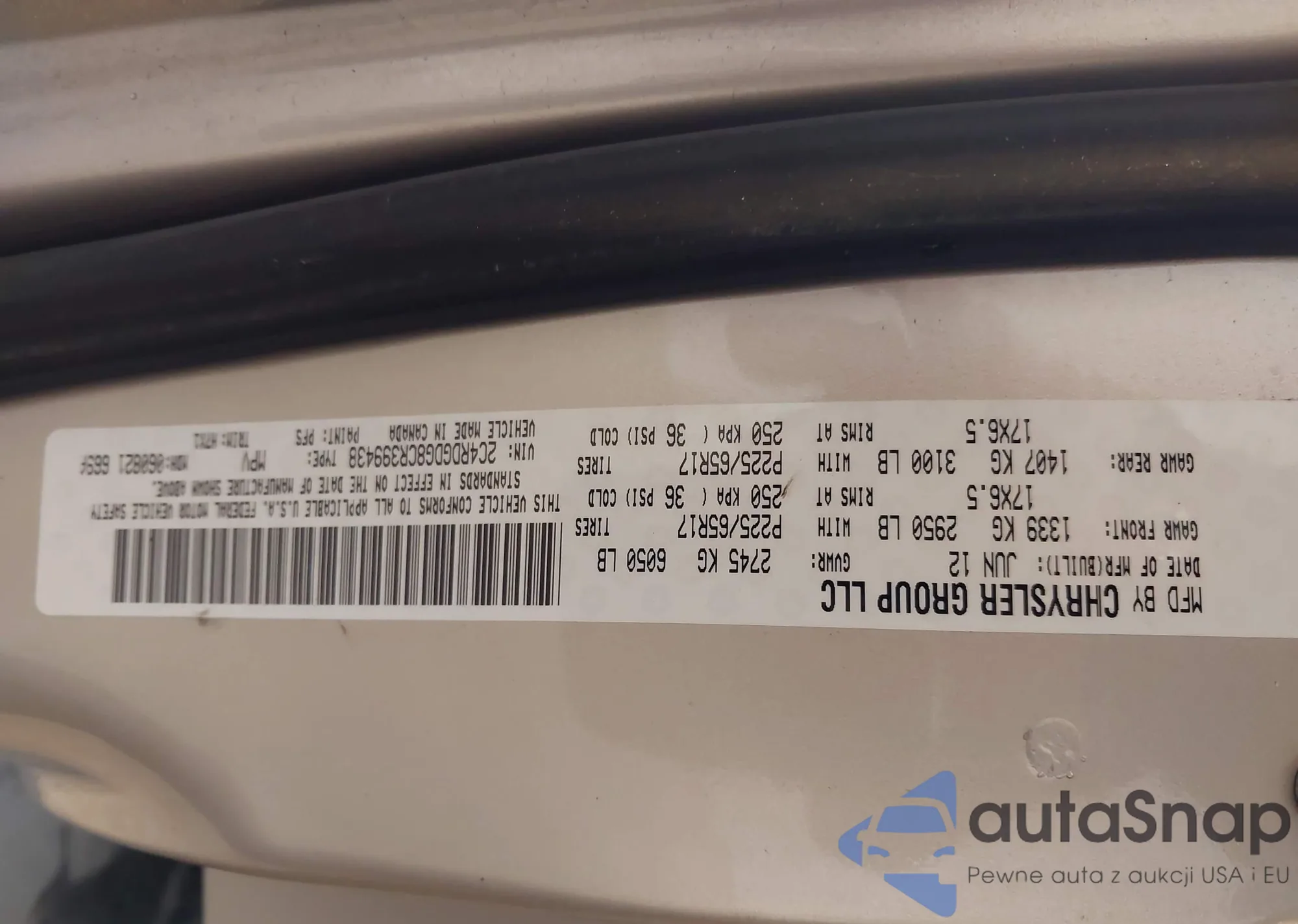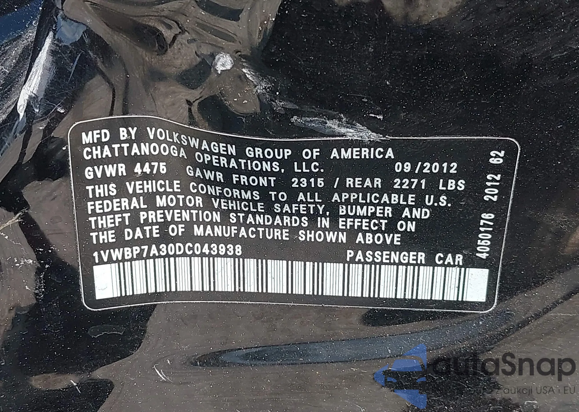 • VIN 1VWBP7A30DC043938